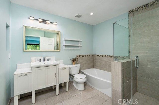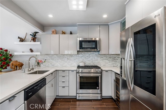 Step into this completely renovated and appealing top-level condo, where every detail is meticulously considered to create an atmosphere of elegance and comfort. The spacious living area welcomes you with high ceilings, above which a loft space with tile floors adds additional living area. Modern high-gloss wood cabinetry and engineered wood floors enhance the appeal, and large windows flood the space with natural light. The elegant window shutters provide a lovely and inviting look in the evening. The kitchen boasts sleek quartz countertops, with top-of-the-line Kitchen Aid appliances that offer style and functionality. The elegant living space includes a granite fireplace over which a large screen modern TV provides a highly relaxing space. Additionally, a recent replacement of the central air conditioning system was undertaken at considerable expense, ensuring the apartment remains comfortably warm in the winter and refreshingly cool in the summer. In the bathrooms, you’ll find luxurious frameless glass showers that add a spa-like touch and spaciousness to the room, larger than those typically found in condos of this caliber. The upgraded bedroom closet interiors have been fitted with wood interiors that provide excellent organizing capacity and highly functional storage space. The exterior deck is refurbished with a porcelain tile floor providing an inviting seating area that overlooks the tranquil exterior. This serene atmosphere boasts lush vegetation, trees, winding streams, and pathways to the hot spas and pool, which provides a perfect relaxation space to unwind. The coast of the Palos Verdes Peninsula is a short drive away and enjoy breathtaking views of the Pacific Ocean along coastal cliffs, stunning West Coast sunsets, and the relaxing sound of waves crashing on the shore. Explore nearby attractions, including the luxurious Terranea Resort, where glorious sunsets over the Pacific and dinner awaits. This hidden gem offers a convenient lifestyle with all amenities just around the corner and a vibrant neighborhood, offering easy access to all necessities. Trader Joe's, many restaurants, Home Depot, FedEx and more are within half a mile. Proximity to the 110-freeway makes commuting a breeze, with downtown LA an easy 25-minute drive away.