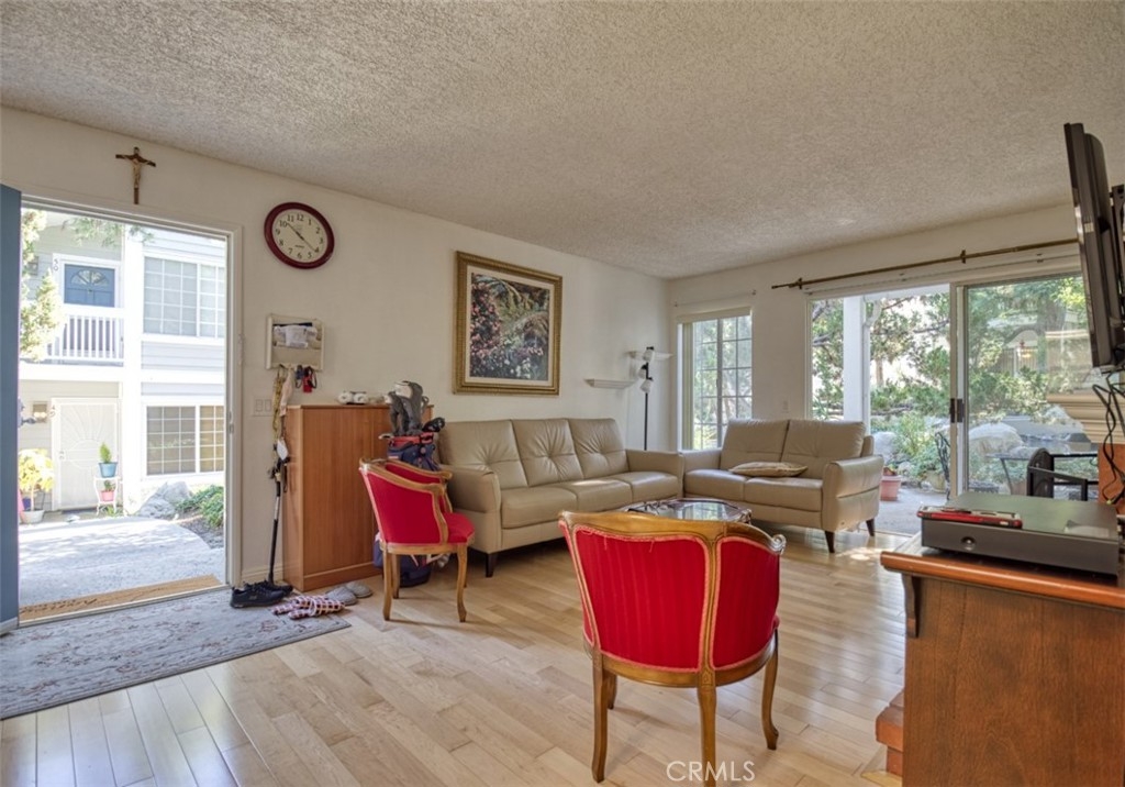 Very beautiful and spacious downstairs condo in desirable Ponderosa Springs!. Kitchen has quality stone countertop, dishwasher, built-in microwave, tile floors. Dining area is light and bright. The living room has a cozy fireplace with brick mantel, the sliding door leads out to a private patio with incredible views of lakes, streams and waterfall, perfect for morning coffee and evening drinks. Storage closet off the patio. The bedroom is large, with walk-in closet and a great view of the water. The full size bathroom is nicely remodeled with granite counters and tile floors. Freshly painted throughout, gleaming maple wood floors throughout. Other great features are the newer central AC system, central heat, inside laundry. 2 car assigned tandem garage parking, association pool/spa. Conveniently close to many shops, entertainment, restaurants, freeway.