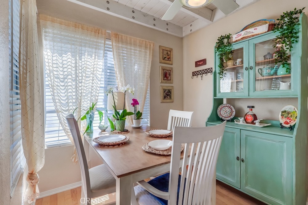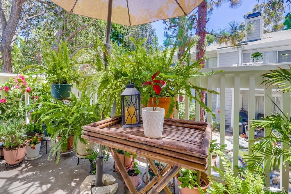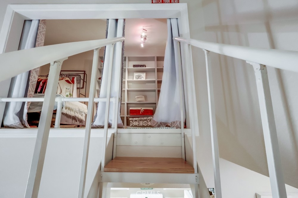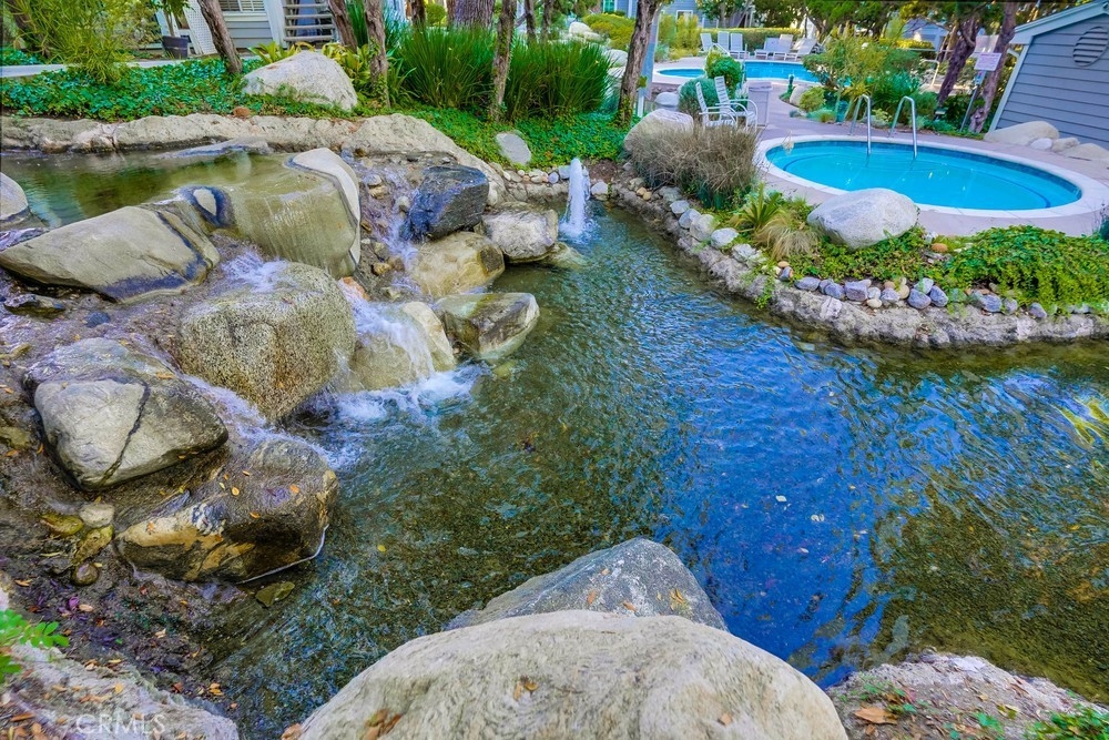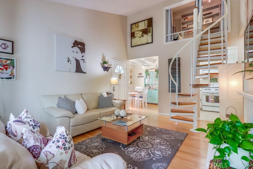 Live like you're on vacation all year long in this bright and inviting upper unit in the lush, resort-inspired Ponderosa Springs community. Set among mature trees, peaceful streams, and waterfalls, this home offers the perfect blend of comfort and convenience. Just steps away, enjoy a beautifully landscaped pool and spa area that feels like a private retreat. Inside, vaulted ceilings and sliding glass doors create a spacious, airy living room that opens to a relaxing balcony. The painted brick fireplace surround adds a stylish focal point, while rich wood floors flow through the living, dining, and hallway areas. The kitchen is clean and functional with white cabinetry, tile countertops and built-in appliances. A sunlit dining area features a unique exposed beam ceiling and multiple windows that flood the space with natural light. The primary suite is spacious, offers a generous walk-in closet and provides easy access to the full bathroom located right outside of the room. An in-unit laundry closet (with stack laundry equipment that's included in the sale) adds everyday ease. A standout bonus is the finished loft with its own closet and spiral staircase—ideal for a home office, guest room, or creative space. The central heat and A/C system will keep you feeling comfortable year-round. You’ll also enjoy two secure, covered tandem parking spots (#599 & 600) right near the stairway that leads to the scenic path to your front door. The Ponderosa Springs grounds are beautifully landscaped and combine with the running streams to create a very tranquil atmosphere that has you feeling like you're removed from the city. On top of all that, this one is in a very walkable location with local shopping, dining and banking literally less than a block away. And finally, there is easy access to the freeway for those who still commute to work. This is a great unit in a wonderful community, don't miss it!