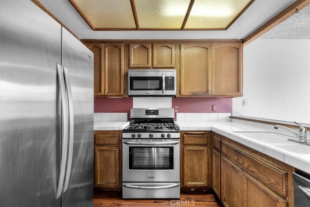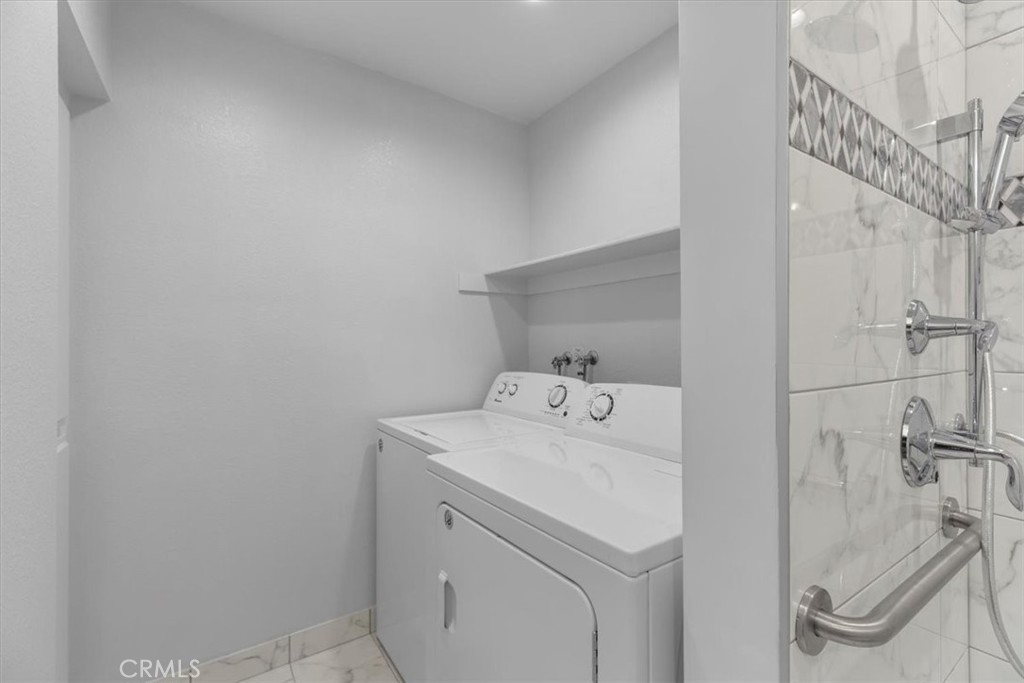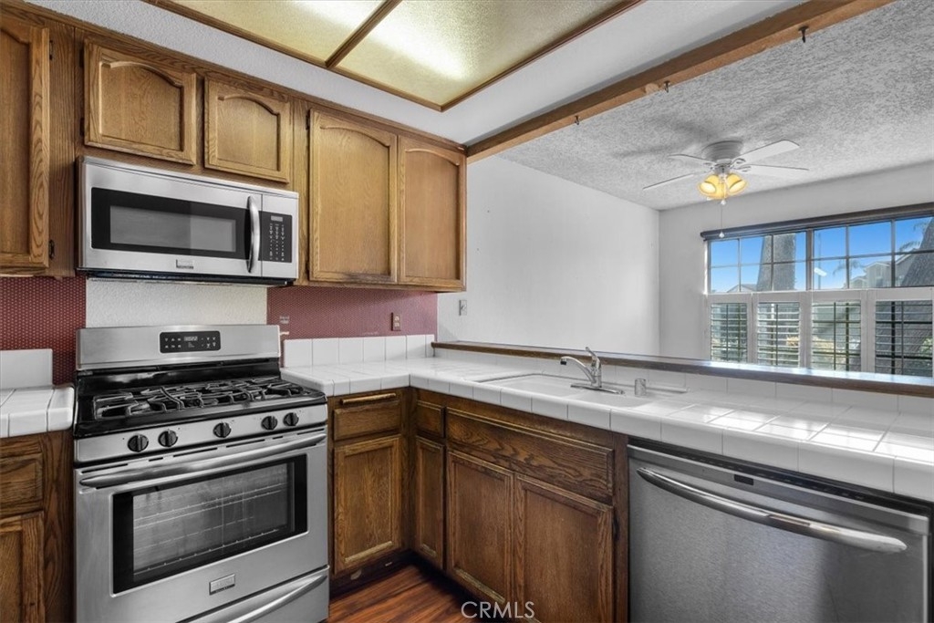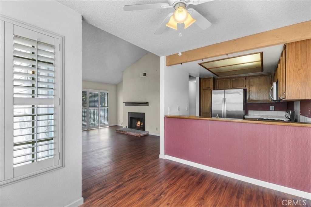 Welcome to 1301 Via Sebastian #20, a 2-bedroom, 2-bathroom condo nestled in the peaceful grounds of the Ponderosa Springs complex in San Pedro. This cozy 961 sqft residence boasts a spacious living room with a fireplace and high ceilings, creating an open and inviting atmosphere for both relaxation and entertainment. Through the sliding doors is the patio, overlooking the interior of the community. The kitchen has tile counters, stainless steel appliances, and opens to the dining area. The remodeled hallway bathroom has a separate area for the side-by-side washer and dryer. Down the hall is the guest bedroom and primary suite which includes a walk-in closet and en-suite bathroom. Additional highlights include a forced-air heater, central A/C, and two assigned tandem parking spots (#375 & #376). The Ponderosa Springs complex is beautifully landscaped with running water springs, waterfalls, and offers spa areas and a pool. Located close to shopping, entertainment, parks, and highway access, this is an opportunity you do not want to miss!
