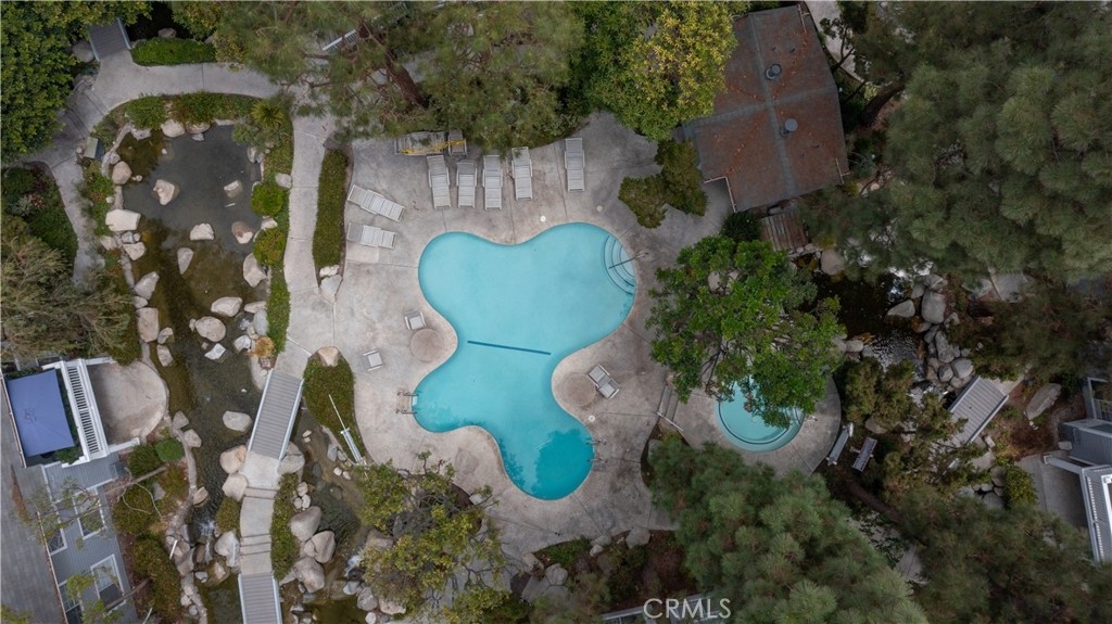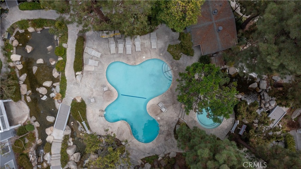 Located in sought after newly renovated Ponderosa Springs. This fantastic gated community features serene ponds, waterfalls and running streams. Beautiful lush landscaping with abundance of mature trees as well as sparkling pools and multiple spas. This upper unit is mere steps away from one of the 3 pools and 4 spas this community offers. Features a large living room, dining area, abundant natural light, vaulted ceilings, gas fireplace and balcony. Spacious master bedroom offers larger walk-in closet with built-in organizers and en-suite master bath for convenience. Guest bath is cleverly located on the hallway across from the second bedroom. There is bonus carpeted space above kitchen that can be converted to an approximately 150 sf. loft. HOA has pre-approved plans included in CC&R docs. Other features include in-unit laundry room with cabinets, brand new HVAC system including all new ductwork and a 2.5 ton AC unit, newer microwave, fridge, dishwasher, garbage disposal and washing machine. Exterior storage on the balcony. Two tandem covered gated parking spaces as well as additional guest and street parking availability. Ponderosa Springs recently underwent over $4 million exterior renovation. Community is also centrally located near Terraces Shopping Center, Target, Trader Joe's, grocery stores, shopping, several restaurants, schools, movie theater. Walking distance to nearby park or few mins drive to the fantastic newly renovated 'Ken Malloy Harbor Regional Park' with hiking, biking, fitness zone, camp ground area, fishing lake/piers. Property video link: https://vimeo.com/586980316
