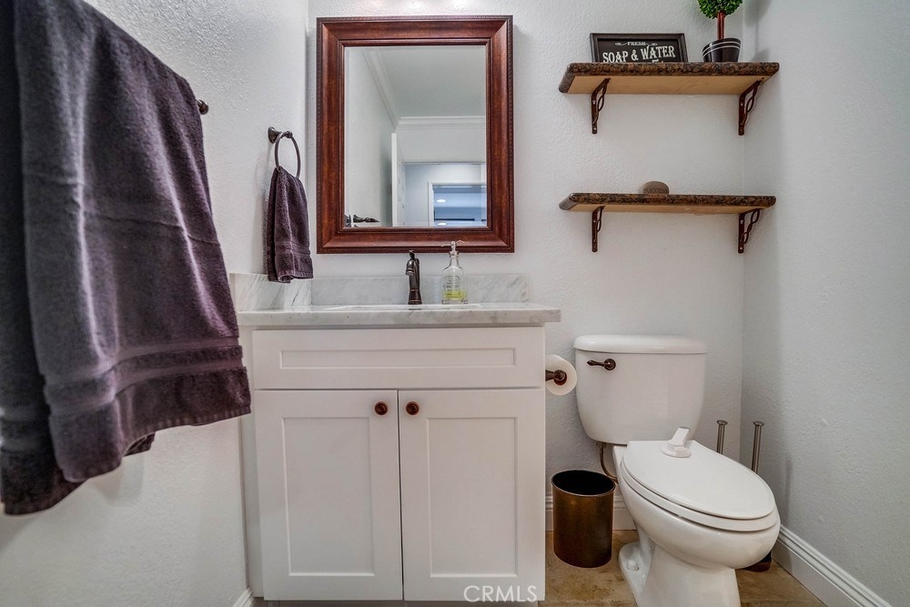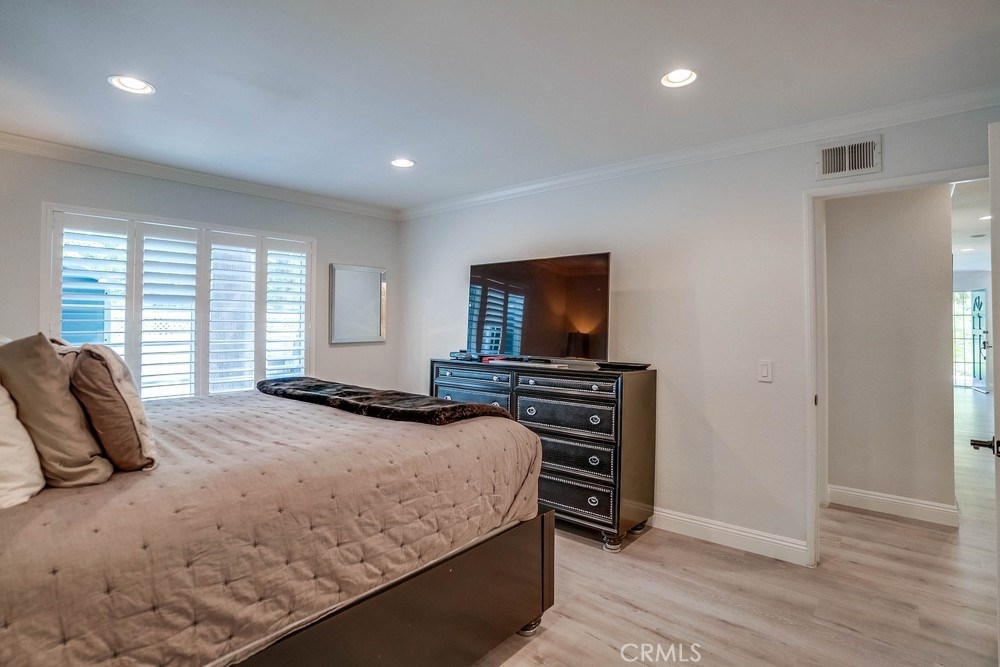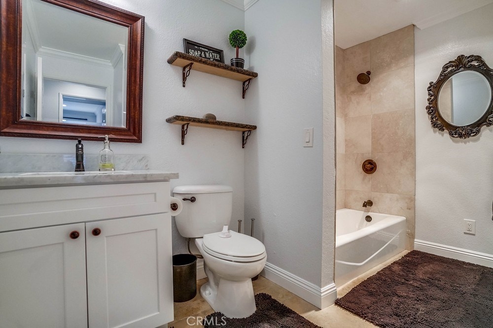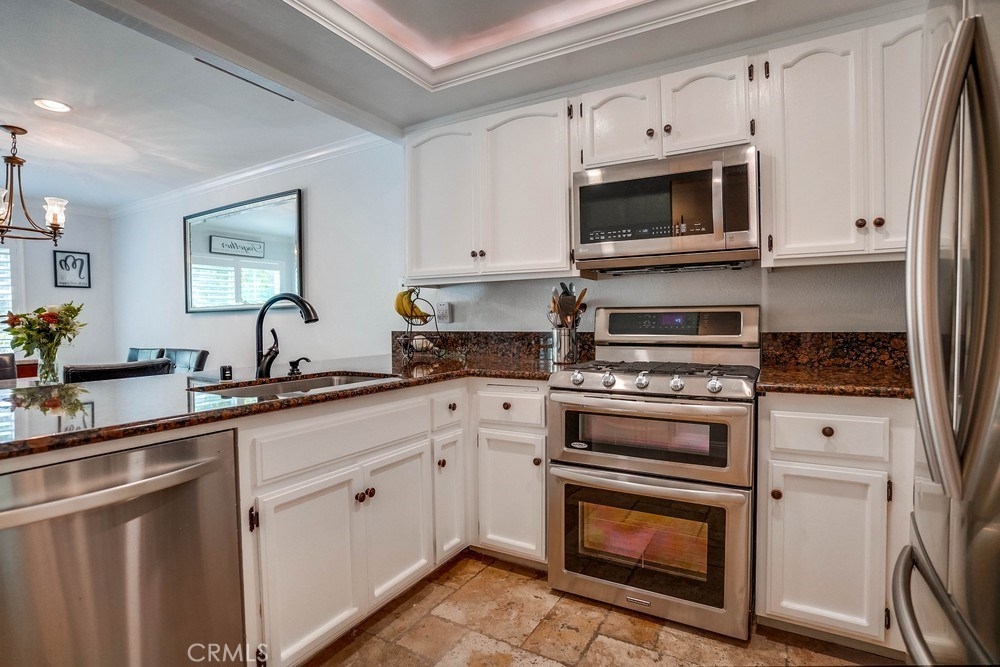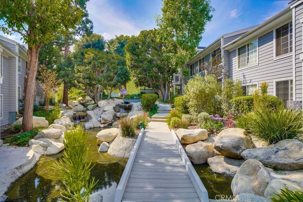 Rare move-in ready ground floor condo in Ponderosa Springs. This 3 bedroom corner unit is extremly private and tucked far away with-in the complex. Living room features a travertine and glass fireplace complimented by a wood mantle and accented wall above, creating a welcoming and luxurious feeling upon entering. Kitchen opens to the dining room and is tastefully remodeled floor to ceiling with granite counter-tops, stainless steel appliances, white cabinets, travertine floors along with recessed and indirect lighting above. Down the hall you will find a fully remodeled guest bathroom along with an individual laundry room. All 3 bedrooms include recessed lighting, crown molding and grey-wood floors. Master bedroom features a spacious walk-in closet and en suite bathroom. Double pane sliding door leads to the unique outdoor space with plenty of space to entertain or create a private outdoor escape. Great location just walking distance to numerous restaurants, grocery stores and just a few minutes away from the 110 freeway.