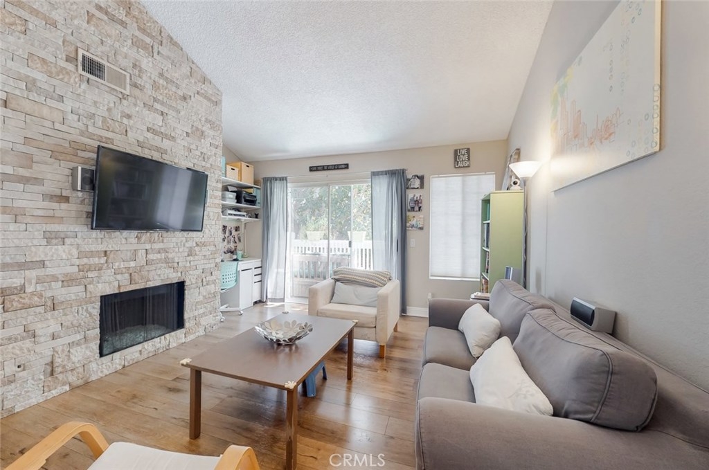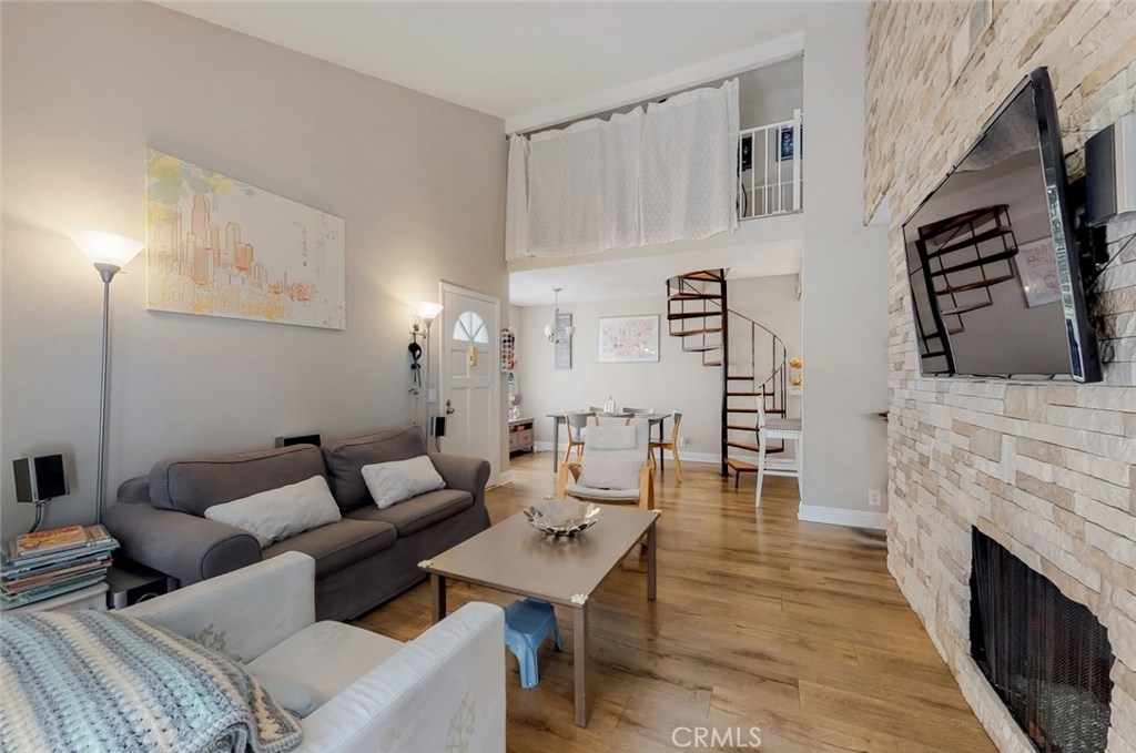 Welcome to Ponderosa Springs! A beautifully landscaped community surrounded by picturesque grounds with running springs, waterfalls, and a variety of mature trees. The 2 pools and 4 spas will have you feeling like you are always on vacation. This upper, corner unit features 3 bedrooms, 2 bathrooms, a large living room, dining area, abundant natural light, vaulted ceilings, gas fireplace and balcony overlooking a nearby Jacuzzi/Spa. Side small stairs lead to a large loft which can be used as a potential 4th guest bedroom or office/den. The spacious master bedroom has a walk-in closet and in-suite bathroom. The entire unit has been meticulously upgraded throughout. Other features include in-unit laundry room with cabinets, central heating and A/C, exterior storage and 2 tandem covered gated parking spaces. It is within walking distance of popular stores and restaurants such as Ralphs, In-N-Out Burger, Chipotle, CVS Pharmacy, and many more.