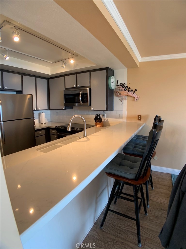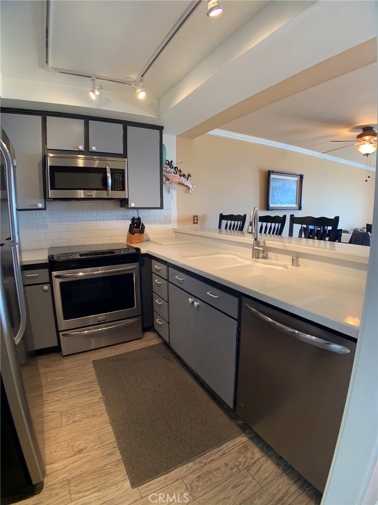 Gorgeous sit down ocean view condo is available in SouthPointe, offering 2 master bedrooms with an open floor plan boasting expansive elevated ocean, golf course & Catalina Island views. This total, turn-key condo is ready for it's new owners and offers an upgraded designer style kitchen with stainless steel appliances, featuring convection oven, cook top stove, microwave and dishwasher. Farmhouse style sink with wave/ no touch wand faucet, fridge with ice-maker. A spectacular ocean view awaits as soon as you open the front door and from every angle of the main living area. Panasonic energy efficient mini-split AC and Heating. Main Master suite with light wood laminate flooring, mirrored wardrobe, custom closet, recessed lighting and over sized patio with Vinyl fencing, pavers and lifeguard style chairs to relax and enjoy the ocean and sunsets. Secondary master with laminate wood flooring, large walk in-closet and direct access outside to courtyard leading to pool. Beautiful community pool offers jaw dropping views to relax and unwind. Pool area has men's and women's bathrooms, showers, ping pong and an private area for birthdays, parties or celebrations. Gated community with secure parking. Just minutes to the beach and world class golf resort in Rancho Palos Verdes. Southpointe is also directly across from open space trails for walking, hiking and biking. Southpointe offers a terrific lifestyle opportunity. This is one you will not want to miss!