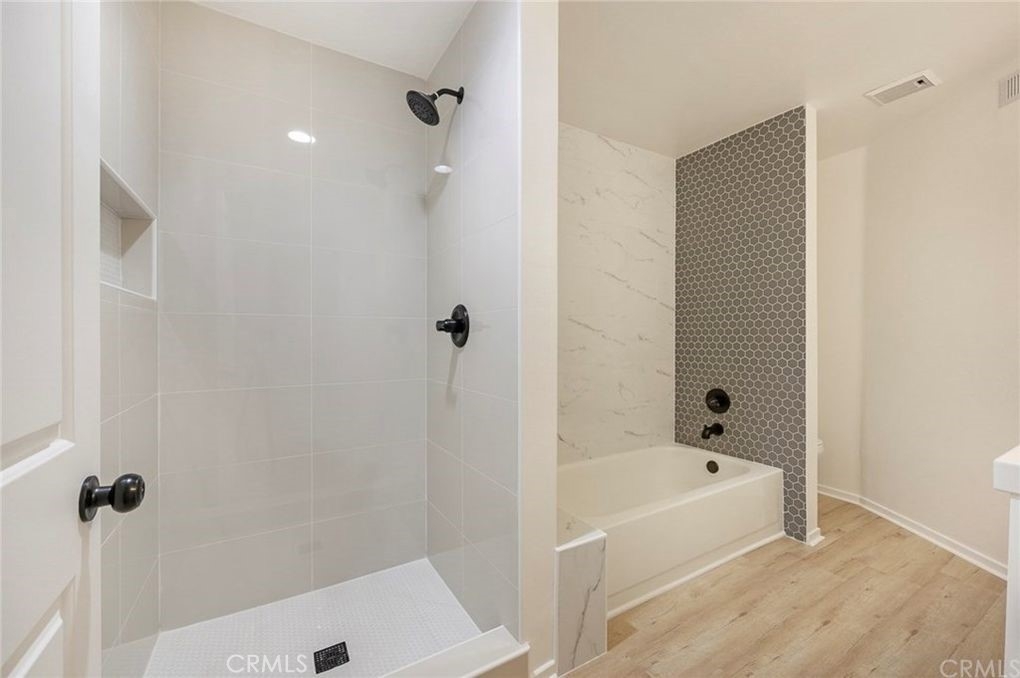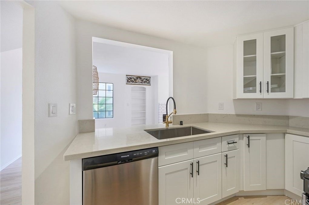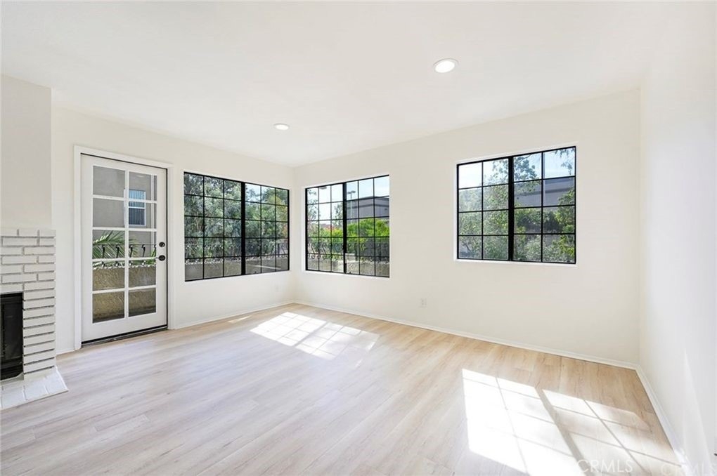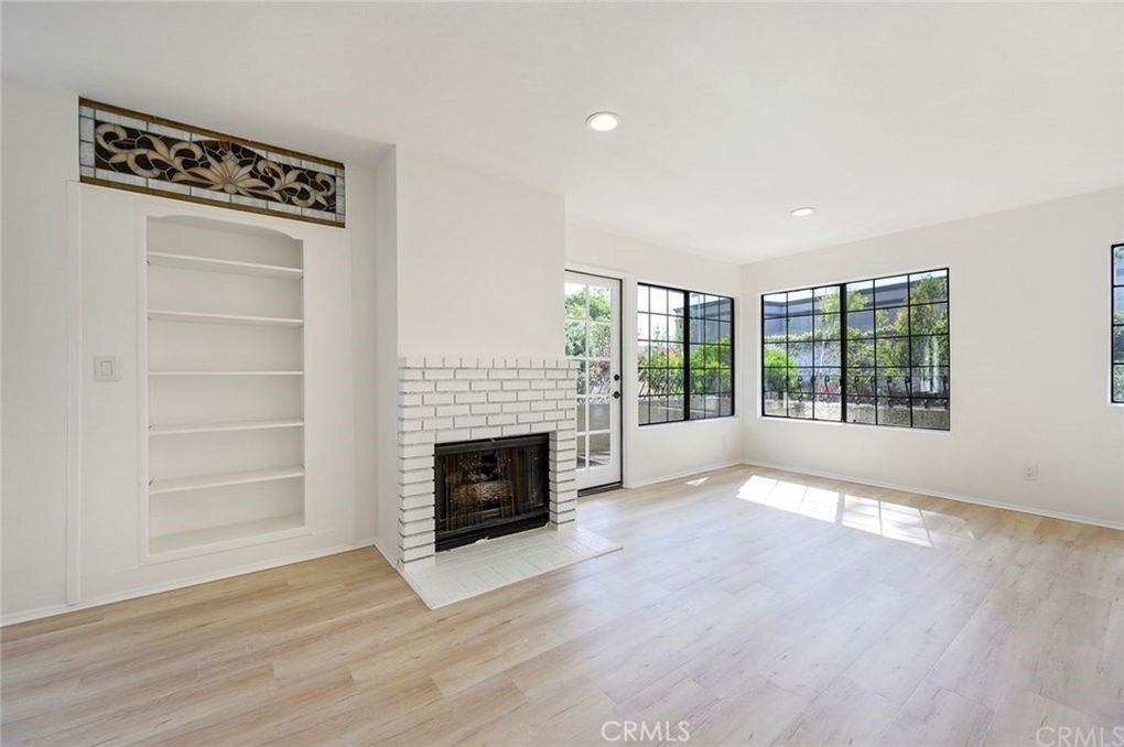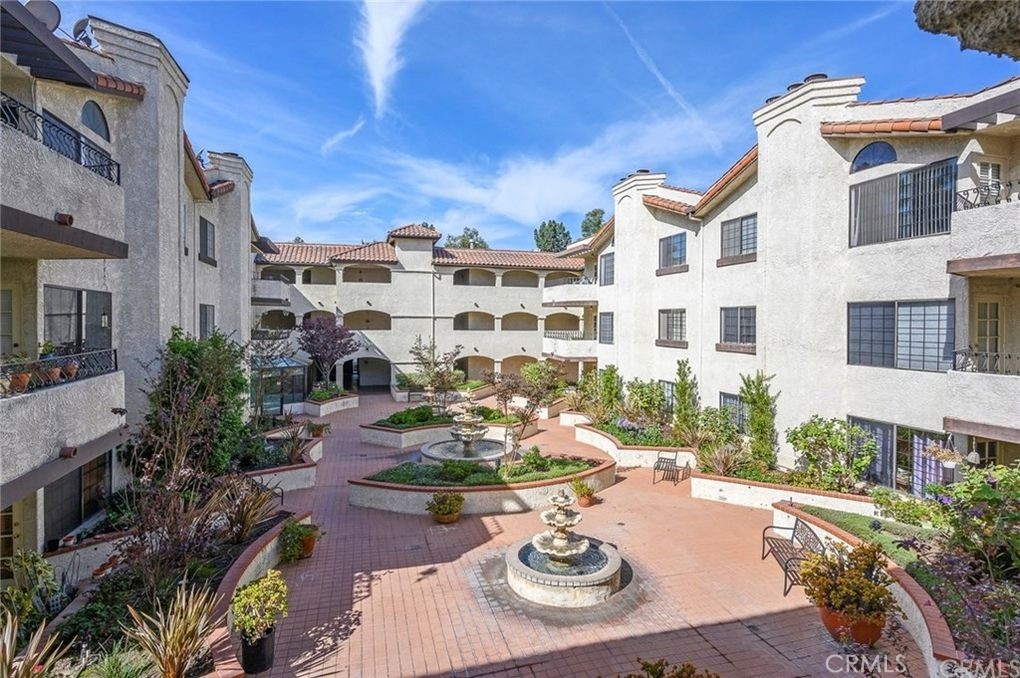 This bright and serene corner unit is tucked away from the street with many windows that bring in plenty of natural light and scenery. So much potential with this spacious 2bedroom layout with 2 balconies overlooking beautifully maintained community landscapes. The entire unit has been renovated and features a light oak laminate flooring, recessed LED lighting throughout, and touches of contemporary fixtures and finishes that create a bright and lively space. The main living and dining space is bright and open, surrounded by windows and free of any separating walls which provides tons of flexibility. The living room also features a brick gas fireplace, built-In shelving, and access to a private balcony. This sun-filled dining area is overlooked by a recently upgraded kitchen including stainless steel appliances, new cabinetry, and quartz countertops. The master bedroom also includes French patio double doors leading to a second private balcony, a large walk-in closet, and an upgraded master bathroom. Both bathrooms are remodeled with a contemporary touch. Other highlights included, a separate (in-unit) laundry room for washer and dryer, 2 assigned tandem parking spaces with private storage Community amenities include plenty of over-night guest parking spaces, jacuzzi and sauna, a bike room, and additional secured storage space within the garage. Community laundry rooms are also provided on each floor by the elevator. The association covers water and pets are allowed! *This unit is currently occupied.