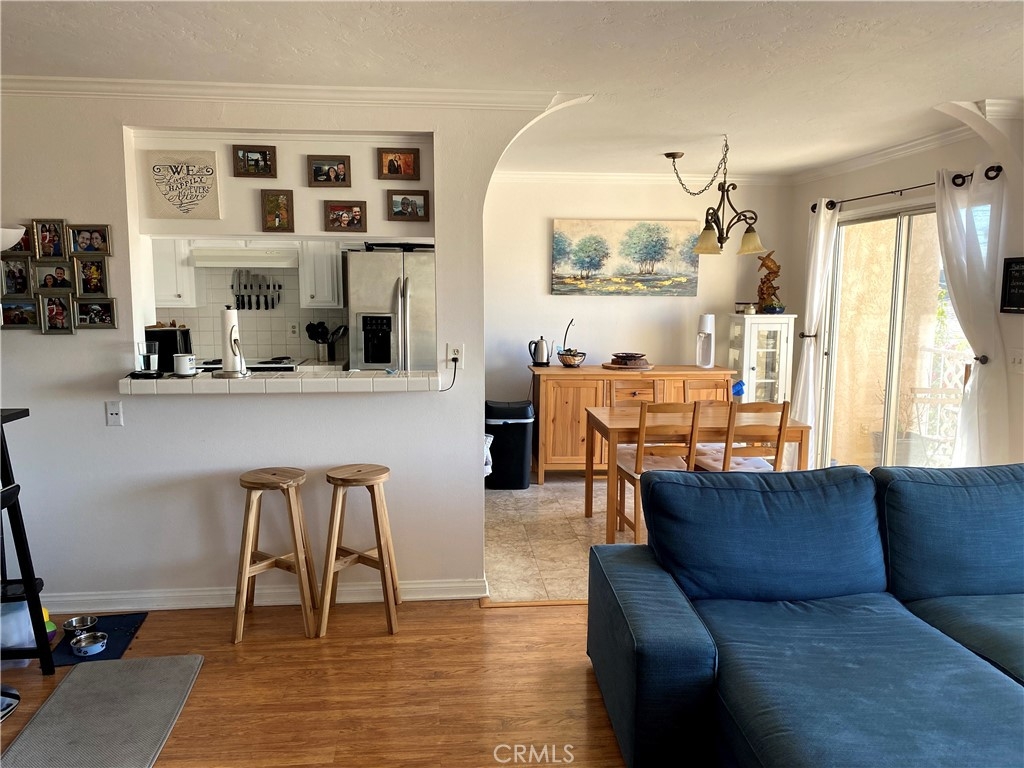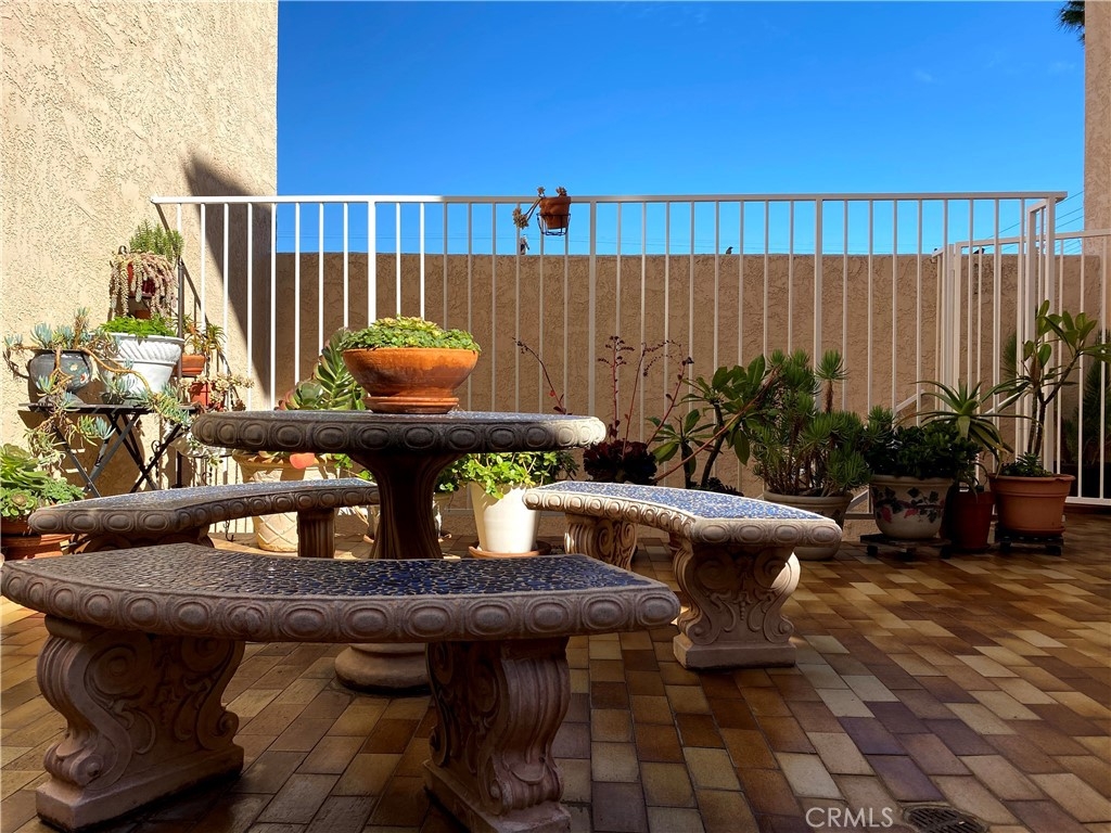 Beautiful Turnkey Condo located on the first floor. This light and bright unit features an open floor plan, a spacious living room with two side by side closets in the entryway, bedroom overlooking the beautiful courtyard, updated bathroom with designer tile in shower, and large storage cabinets in the hallway. Beautiful accent arches, crown molding, and textured ceilings decorate the unit. Open kitchen, plenty of counter space, and laminate flooring throughout rest of home. A lovely dining area with Balcony overlooking the peninsula hillside. Large living room window overlooking the same hillside and allowing a refreshing ocean breeze to flow through the home. Assigned tandem parking space in secured community garage. Three storage areas with space above parking, in the elevator room, and in a bin behind your parking space. Elevator and trash shoot for convenience. There is a Laundry Room on the same level, and also an Exercise Room/Gym. Shopping centers, a Supermarket, and parks with beautiful views are within close distance to this complex.