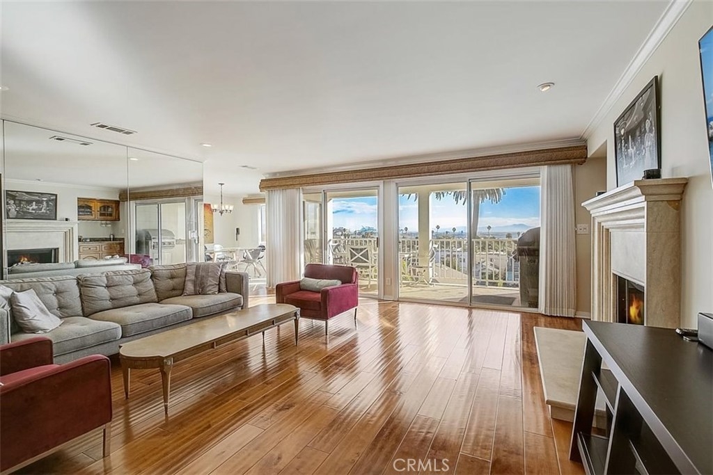 AMAZING ocean and harbor views from this remodeled one-level condo. Enjoy watching all the ships and harbor lights from the living area, dining, kitchen and balcony. Fully renovated throughout with high quality materials and fine attention to detail, this stunning home is sure to please the most discerning buyer. Entry with marble floor and medallion inlay opens into the gracious living area with wide-plank hardwood flooring, custom fireplace and wet bar. A mirrored wall reflects the light and views from every angle creating a bright and welcoming place to relax and unwind. Gorgeous kitchen with granite countertops and handcrafted cabinets open to a sunny dining area. A small office is the perfect nook to work from home. Enjoy the sea breeze on the covered balcony equipped with built-in BBQ and closet with washer and dryer included. Spacious Main Suite features cedar-lined closet with organizer and gorgeous bathroom with custom tile, spa tub and ornate vanity. Second bedroom with mirrored closets plus a second bathroom with elegant shower and custom vanity with glass bowl sink. Additional features include a newer AC system and a private 8x12 storage unit. All you have to do is move in!