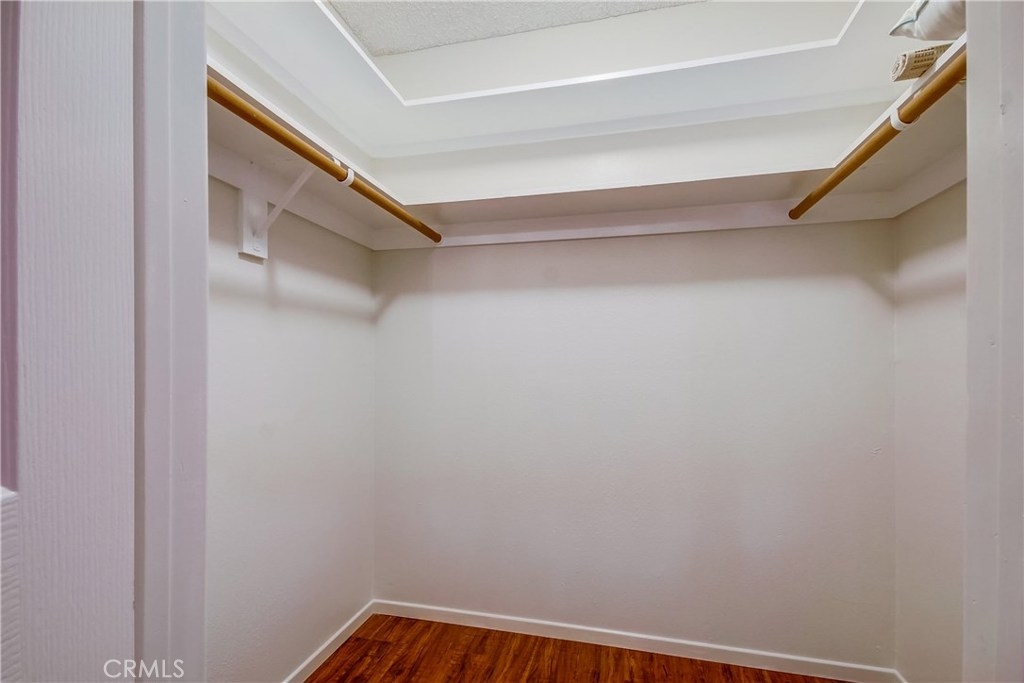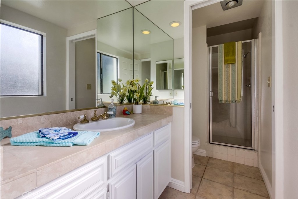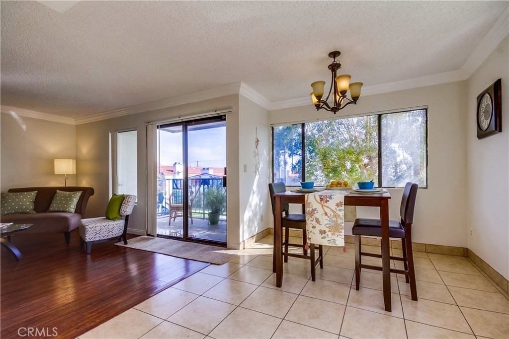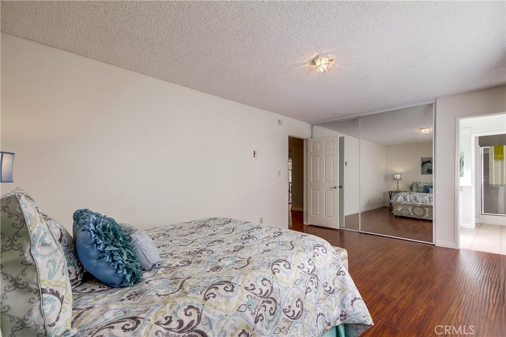 Light and bright corner unit in the highly desirable upper Vista Del Oro area of San Pedro. Turn key 2 bedroom, 2 baths one level condo in a building with an elevator. Laminate wood flooring throughout the living area, ceramic tile in the kitchen, dining and bathrooms. First bedroom is a spacious master with private bathroom. Second bedroom is also spacious with walk-in closet with guest bathroom accessed just of the hall. Lots of storage inside the unit and a storage cabinet in the secure subterranean parking with 2 parking spaces. Laundry room inside unit with cabinetry with room for full size washer and dryer. Private covered balcony with storage closet. Lots of greenery makes this corner unit private. Close to local hot spot Weymouth Corners with post office, restaurants and the famous Polly Ann Bakery!