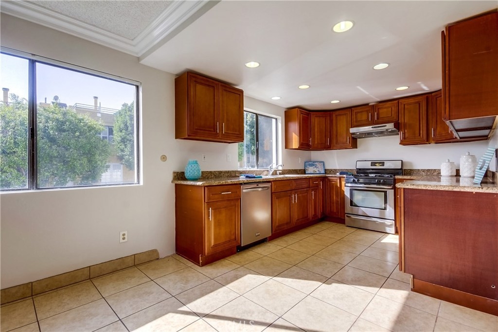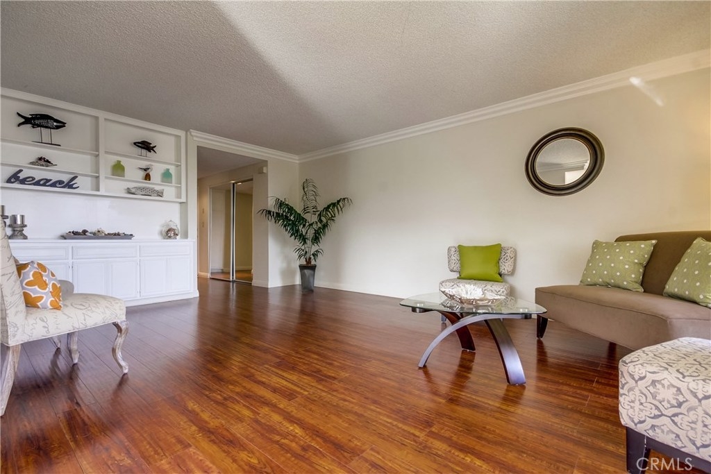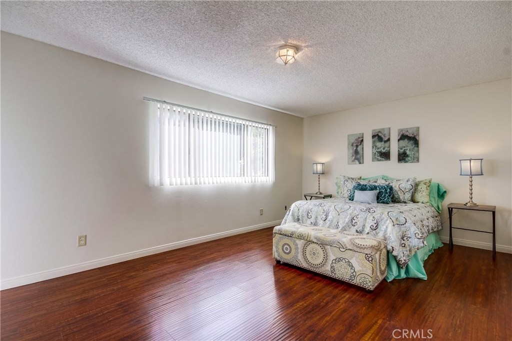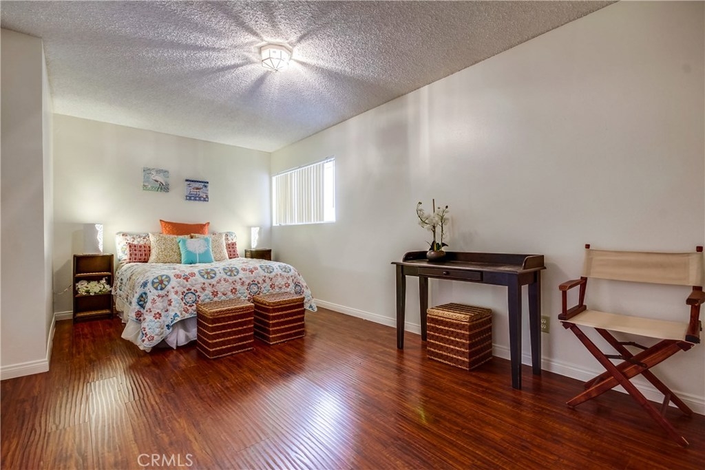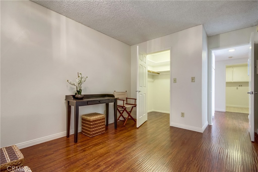 Light and bright corner unit in the highly desirable upper Vista Del Oro area of San Pedro. Turn key 2 bedroom, 2 baths one level condo in a building with an elevator. Laminate wood flooring throughout the living area, ceramic tile in the kitchen, dining and bathrooms. First bedroom is a spacious master with private bathroom. Second bedroom is also spacious with walk-in closet with guest bathroom accessed just of the hall. Lots of storage inside the unit and a storage cabinet in the secure subterranean parking with 2 parking spaces. Laundry room inside unit with cabinetry with room for full size washer and dryer. Private covered balcony with storage closet. Lots of greenery makes this corner unit private. Close to local hot spot Weymouth Corners with post office, restaurants and the famous Polly Ann Bakery!