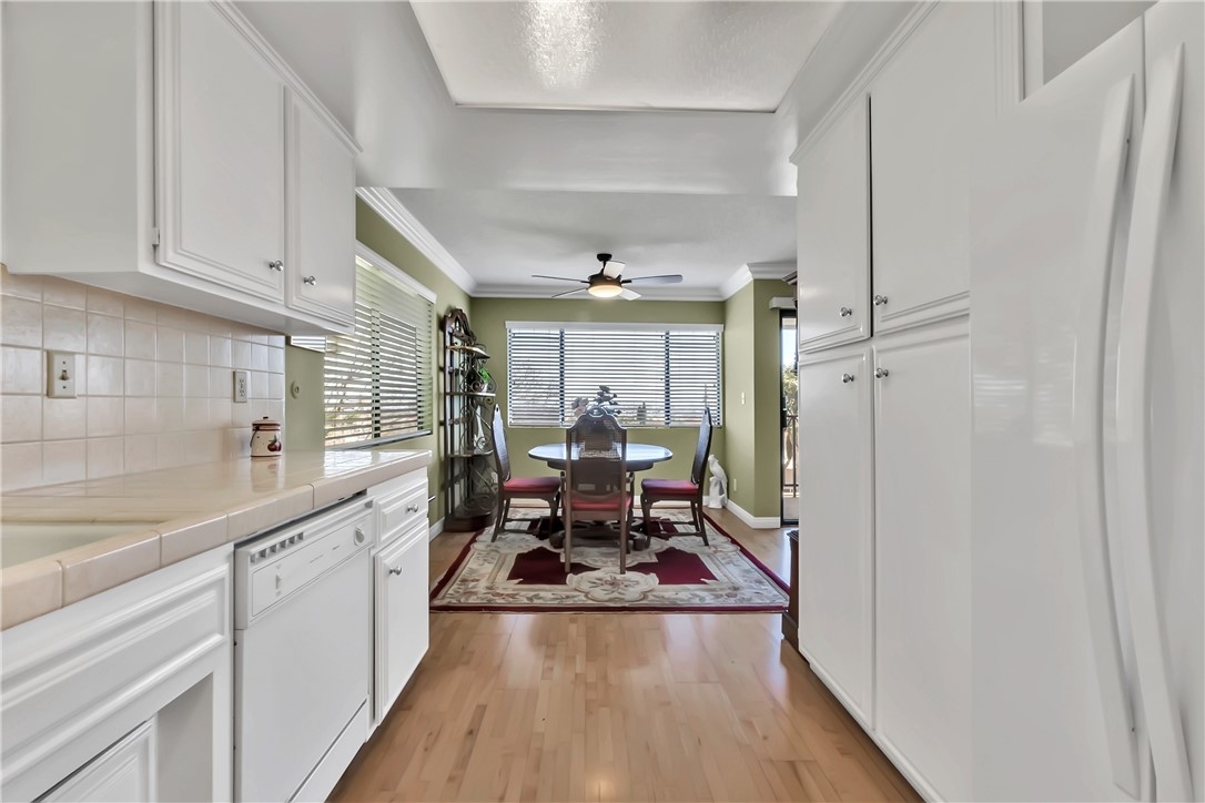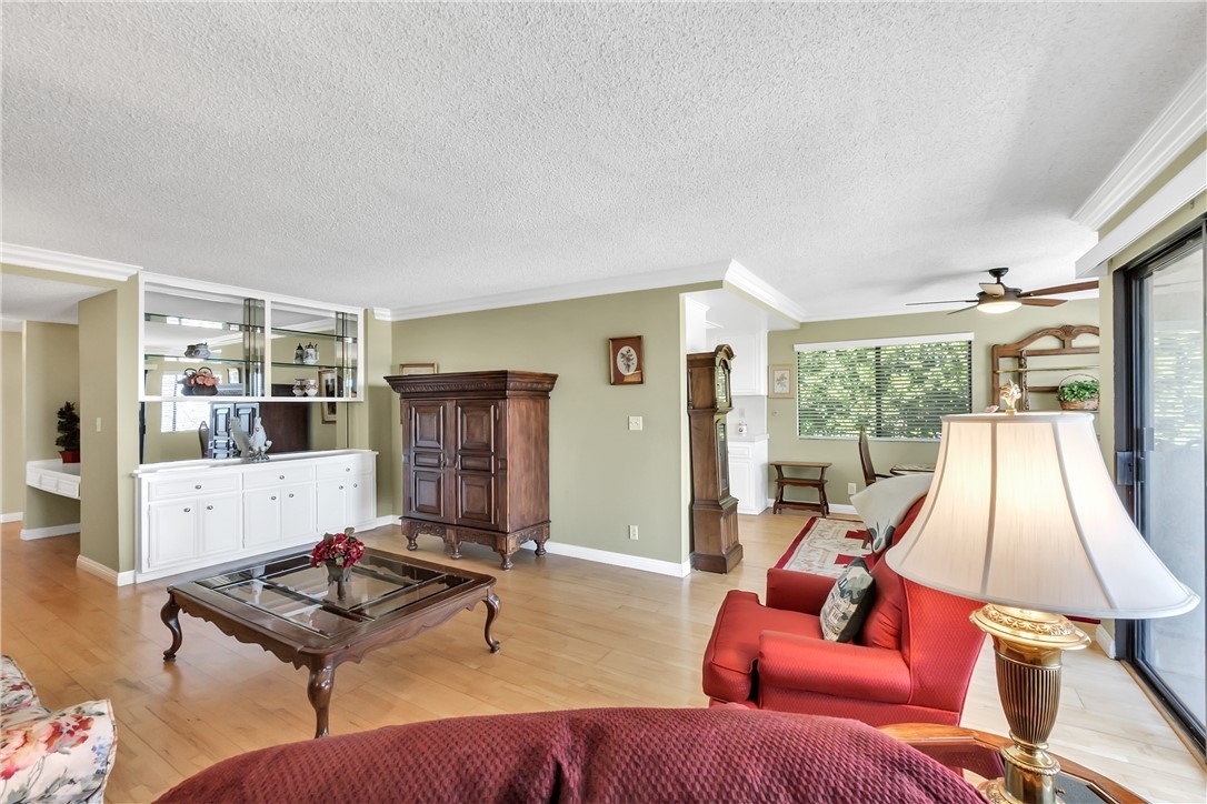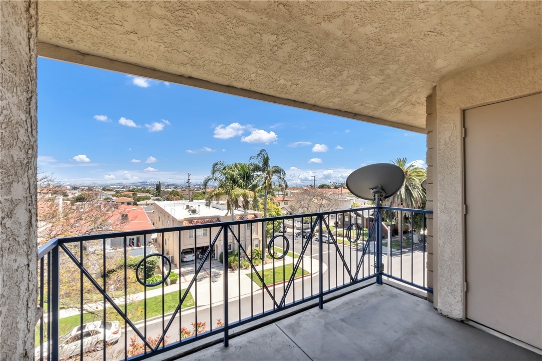 Welcome to this bright and spacious one level 2 bedroom, 1 3/4 bath VIEW condominium in the Vista Del Oro neighborhood of San Pedro. This top floor, corner unit's amenities include maple wood floors in the living room, dining area and kitchen, in unit laundry room with washer & dryer and custom blinds through out. There is a built-in shelving/cabinet unit in the living room and additional storage/closet space in the entry. Both carpeted bedrooms have large walk-in closets and ceiling fans. Off of the living room there is a spacious balcony where you can enjoy the panoramic views of the Vincent Thomas Bridge, breakwater and LA harbor. The security building has an elevator and assigned gated subterranean parking for 2 cars. Just minutes away from the 110 freeway and the San Pedro waterfront.