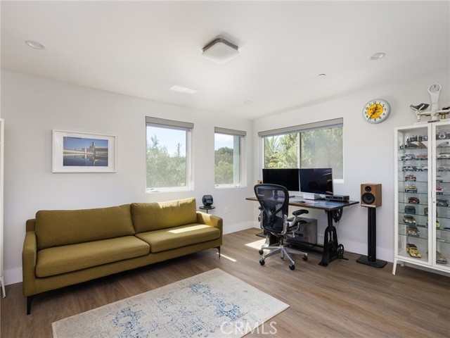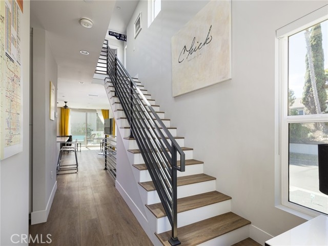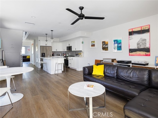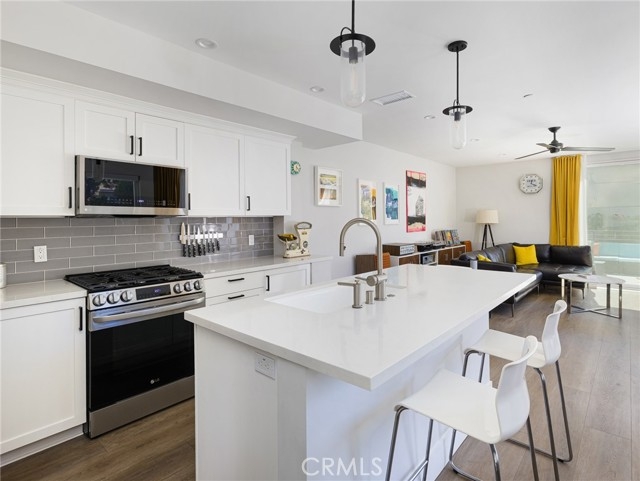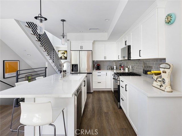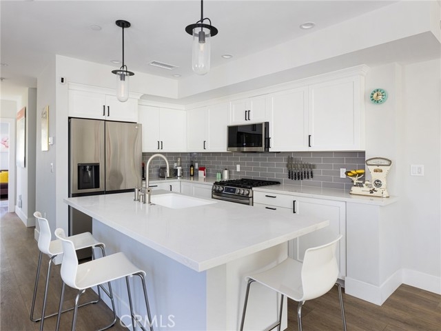 A True Gem of San Pedro! This one-year-old, modern architect-designed front unit in a 6 unit townhouse complex lives like a single-family residence. Located minutes from the ocean in Vista Del Oro and a short walk to Averill Park, it offers nearly 2,000 sq. ft. of modern living, filled with lots of natural light and palm tree views. Upgrades include premium stainless steel smart appliances, quartz countertops, luxury vinyl plank flooring, recessed LED lighting, hallway skylights, tinted windows, luxury touch-less faucets, a fire sprinkler system, newly installed premium roller shades, and it comes with with high-end washer and dryer set. The open-concept kitchen and living area flow seamlessly to a large private patio—perfect for entertaining or barbecuing, and includes an additional front-side balcony. The home is also equipped with a wired high-speed Ethernet network, ideal for remote work, or streaming. The private, finished tandem two-car garage includes an EV charging outlet, polished concrete floors, a utility sink, and custom shelving, with natural light from a side window—providing plenty of storage and the perfect setup for a workshop. This home is close to the Pacific Ocean, Cabrillo Beach, shopping, dining, and the vibrant San Pedro arts community. Just minutes from the upcoming West Harbor waterfront with its amphitheater, Ferris wheel, and world-class events. Don’t miss this turnkey home, offering the best of modern and coastal living. See Supplement for complete Floor Plan.