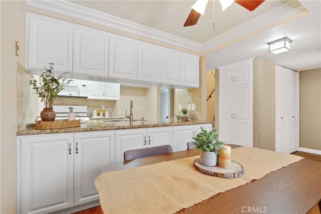 VALUE PLUS RIGHT HERE!!!! Beautiful Vista Del Oro TOWNHOME! This is the only TOWNHOME style unit in this building! No one above you! This nicely updated unit is warm and inviting and offers lots of sunlight and open space. The remodeled kitchen offers custom cabinets - lots of them – and granite counters. The adjacent dining room has plenty of room to dine in comfort. A spacious living room has room for your huge sofa or massive big screen TV and opens via two sliding doors to a private balcony. Side-by-side laundry and a guest bathroom are conveniently located on the first floor. Upstairs are two bedrooms – the larger one has two sliders to a private balcony and also two large closets with floor to ceiling mirrored doors. The 2nd bedroom is also spacious with a good sized closet. The bathroom is updated with newer vanity, tile shower surround, and clear glass shower doors. Other great features include smooth ceilings, crown mouldings, ceiling fans and more. There are two tandem parking spaces (#9) in the gated garage as well as additional storage. An elevator makes for easy access. This cute 19-unit building is well maintained and has recently had exterior updates including paint and new awnings. Super easy access to stores, schools and the freeway if you have to commute. Be a part of the San Pedro renaissance and get in while you still can!