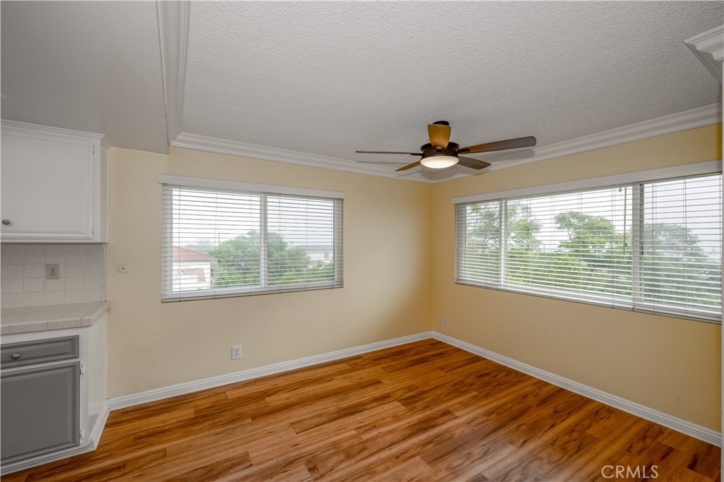 This condominium in the Vista Del Oro neighborhood of San Pedro sounds like a dream with its combination of stunning views and modern conveniences. The top-floor corner location offers both privacy and sweeping vistas of the Vincent Thomas Bridge, breakwater, and LA harbor, making the balcony a perfect spot for relaxation and taking in the surroundings. The condo is thoughtfully designed, with newer features like low-noise appliances and updated flooring in the common areas. The built-in shelving in the living room is a nice touch for storage and decor, while the two spacious, carpeted bedrooms each with a walk-in closet and ceiling fan provide comfort and practicality. With two bathrooms, one with a tub and the other with a shower, it offers flexibility for both residents and guests. The in-unit laundry room is a great convenience, eliminating the hassle of shared laundry spaces, and the custom blinds throughout ensure light control and privacy. Security and accessibility are well-covered, with a building security system, an elevator, and assigned gated subterranean parking for two cars. This unit seems to offer a balance of luxury, convenience, and breathtaking views. Perfect for someone looking to live comfortably with easy access to both the freeway and the waterfront. A must See