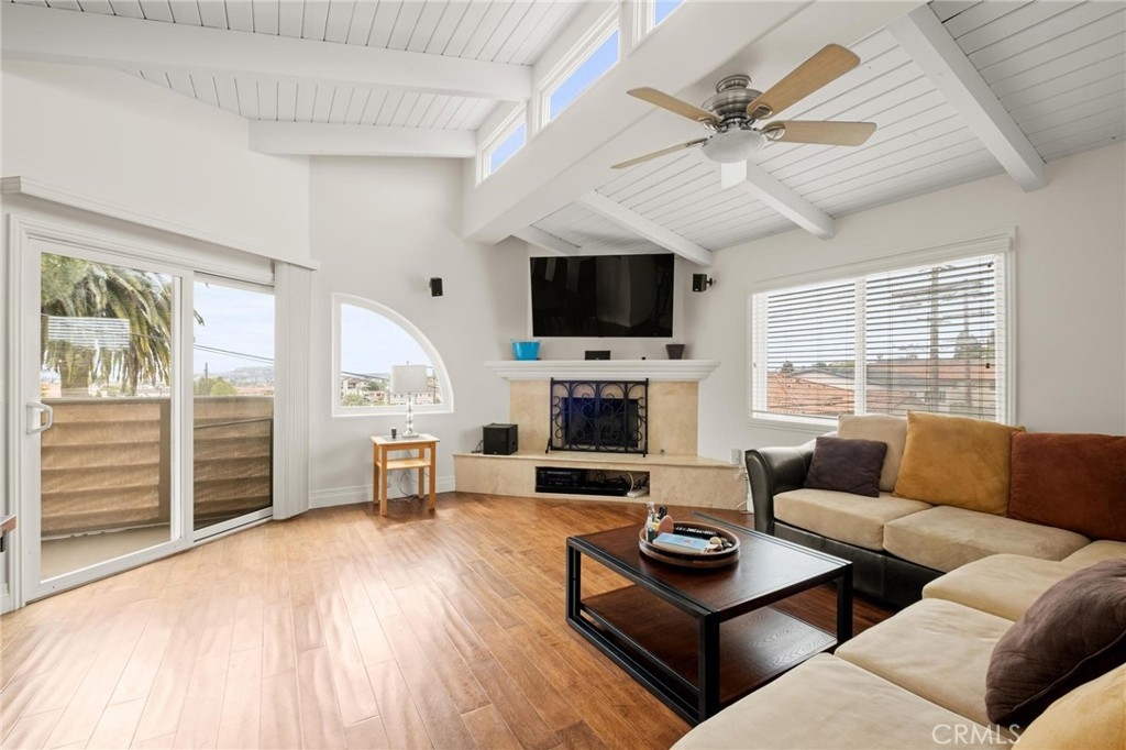This light-filled, 1,383 square-foot townhouse-style condominium in the desirable Vista Del Oro area of San Pedro offers a blend of style and function in three well-designed levels. Bathed in natural light from numerous windows and transoms. The functional floor plan connects living spaces, while built-ins and clever storage solutions keep the interior organized and tidy. Originally built in 1990, this 2-bedroom, 3-bath residence exudes quality and comfort throughout. On the top level, the living room is centered around a cozy fireplace, there is a bright kitchen and dining area. Windows frame glimpses of the harbor in the distance, filling the home with sunlight and a picturesque backdrop. There is also private balcony with a view of the San Pedro harbor. The chef’s kitchen features a double oven, brand-new dishwasher, double oven and ample counter space for meal prep. A conveniently located powder room adds comfort for guests. On the the second floor, you’ll find spacious bedrooms—complete with an updated full bathroom and even partial harbor views—and a handy laundry area for added convenience: the primary suite offers additional storage with built-in closet shelving. This home’s thoughtful details abound, from the modified two-car garage (currently accommodating one car to make room for extra storage) to the built-ins throughout. Vista Del Oro’s prime location means you’re just minutes away from waterfront parks, scenic hiking trails, and the shops and restaurants of downtown San Pedro. With its bright, open design, smart layout, and views, this townhouse-style condo is a rare find. Don’t miss your chance to experience the light-filled ambiance and inviting comfort of this beautiful home. *****CORRECTION TO HOA FEE $400. Per month*****