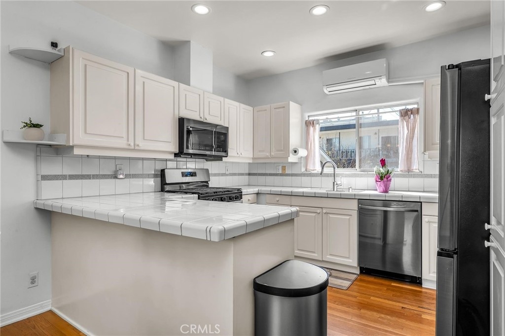 **A Little Piece of Heaven—Your Perfect Retreat!** Tucked away at the serene **end of the complex**, this exceptional unit offers unparalleled tranquility with **picturesque views of lush trees and blue skies**. Enjoy the adjacent **community patio area**, a peaceful space that feels practically exclusive to you due to its rare use by others. For added convenience, **two guest parking spaces** are located just steps away. Enter at the **garage level**, where you’ll find **two spacious storage areas** and **direct access to an oversized two-car garage**. With plenty of room for a washer, dryer, an extra fridge, trash cans, and additional items, plus space to park two cars, this garage is a standout feature. And don’t miss the **electric car charger**, perfect for your EV needs! On the **second level**, discover thoughtful storage solutions, a hall bath, and the expansive **primary bedroom**. This luxurious retreat boasts **wall-to-wall closets on two walls** and a private ensuite with **dual sinks on a generous vanity** and a **large shower with elegant glass doors**. The **upgraded hall bath** features a stylish **tile surround and glass tub enclosure**, while the **second bedroom** offers a spacious closet and plenty of charm. Head upstairs to the heart of the home, where you'll find **hardwood floors**, a **half bath**, and a **spacious kitchen** with ample workspace. All **kitchen appliances** are thoughtfully included, making moving in a breeze. The living area exudes warmth with a cozy ambiance, thanks to the Mitsubishi **mini split Heat and AC units**, ceiling fans, and **breezy screened balcony**, perfect for enjoying stunning **canyon views** without a single buzzing fly! It’s like having your own private oasis, where indoor and outdoor living flow seamlessly. With **hard surface flooring throughout**, this unit is not just a house—it’s a home where every detail has been considered for comfort and convenience. This is the retreat you've been dreaming of—schedule a tour today and fall in love with your own little piece of heaven!