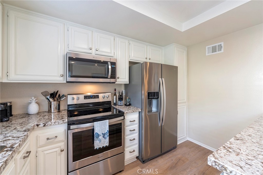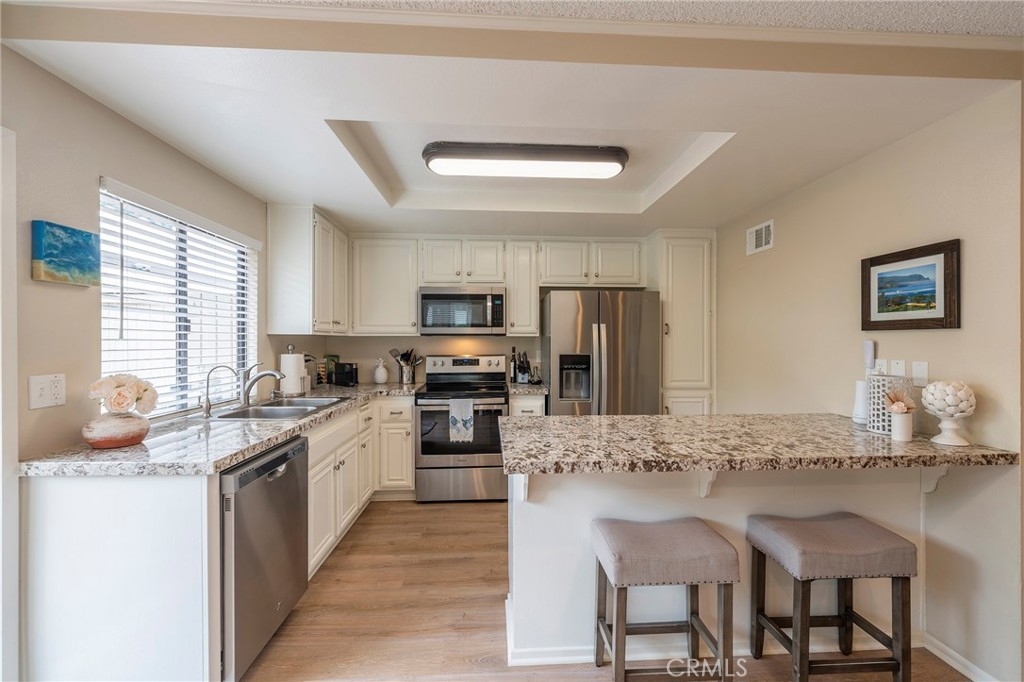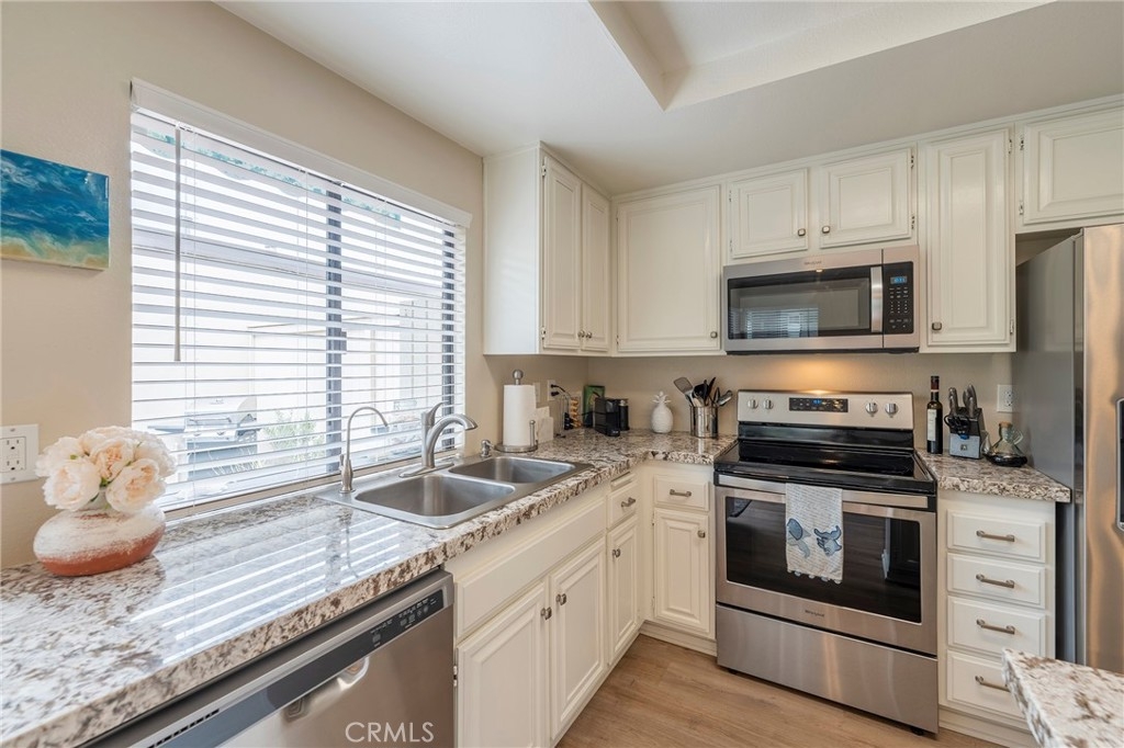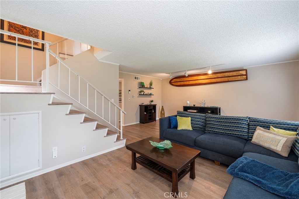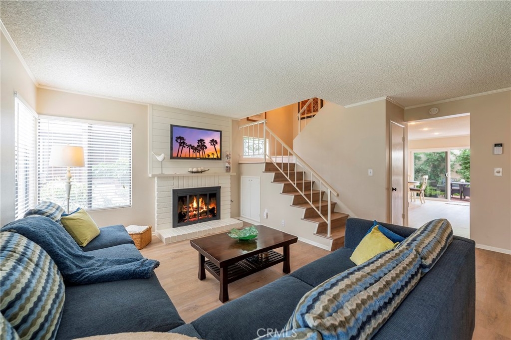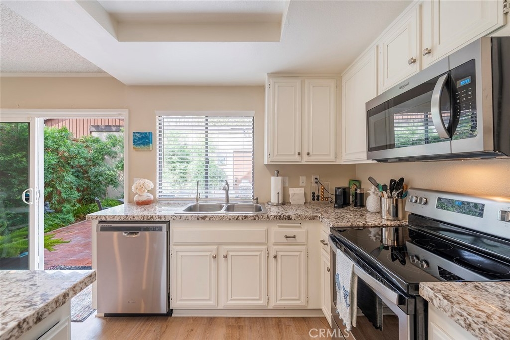 Discover the epitome of coastal living in this beautiful 2 bedroom, 2.5 bath end unit Townhome located in the prestigious community of "The Gardens" in San Pedro. When you enter this unit you will notice the new laminate flooring throughout the unit. Modern amenities include central air conditioning for year-round comfort, while a fireplace adds a touch of coziness to the living space. The private patio has a fountain, mature plants, and automatic patio shade retractable awning. The 2-Car garage has plenty of storage, and the garage door opener can be controlled by a phone app. This townhome has plenty of storage. The HOA has a pool and tennis/pickle-ball court for your enjoyments. The beautiful grounds are maintained professionally. This home is turnkey ready!