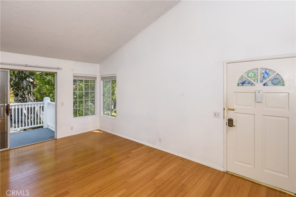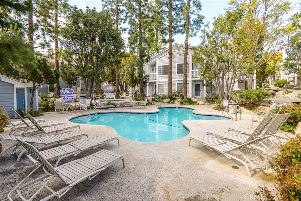 Enjoy this Very clean upper unit overlooking the stream and pool area. Let the soothing sound of the running streams lull you to sleep at night. The dining area is Light and airy and the living room has a cozy fireplace and a sliding door leading to the spacious balcony. Bamboo floors throughout most of the home. The kitchen has been updated with quartz counter tops and tile floors. This unit has 2 full baths and an inside laundry room. The master bedroom has a walk-in closet and New carpet in both bedrooms. Central air, new water heater, 2 parking spaces and a storage locker on the balcony. Washer and Dryer included. This is the ONE!