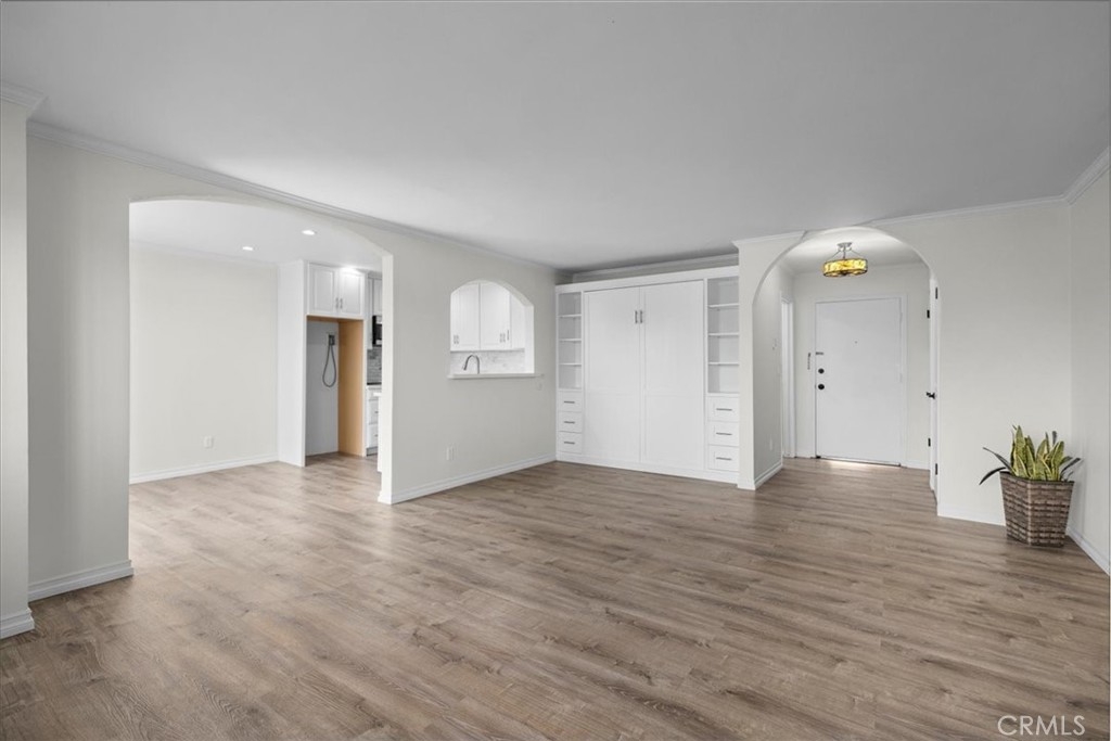 Perfect for a first-time homebuyer or savvy investor looking to enjoy instant value in the heart of San Pedro while catching the appreciation wave from all the new development coming to town; this is a rare opportunity to acquire a move-in ready and amenity-rich unit with entry level pricing. This well-maintained and beautifully updated spacious First level 1-bed/1-bath condo exudes resort-style living with an abundance of natural lighting, a built-in murphy bed in the living room, plenty of cabinet and closet space for additional utility, and a sliding glass door opening to a balcony facing lush and beautiful plant life. Pride of ownership evident throughout; the unit has been lovingly maintained by the same owner for nearly 20 years and was freshly painted and updated in 2021. Upgrades include a beautiful kitchen backsplash above flowing Calacatta Quartz Gold countertops, self-closing cabinets, custom plantation shutters in the living room and bedroom, blackout blinds for privacy and sound insulation, recess lighting throughout, new thermostats, updated shower backsplash, in-ceiling speaker and LED lighting in shower, LED mounted mirror, a towel warmer and a beautiful marble composite countertop at the bathroom vanity. Unit #2 is ideally situated within the 22-unit San Catalda HOA, opening to an artfully tiled courtyard with serene water fountain and lush landscaping. You can let yourself spread out with two (2) exclusive use tandem parking spaces, in-garage storage space, and additional exclusive-use storage space in-building near the elevators. You’ll sleep soundly with gated parking and secured entry ... and you can save on gym membership with a community gym that was upgraded in 2021 with new equipment, new floors, countertops, and bathroom upgrades. Additional amenities include a meeting room, wet bar, community library, and community laundry facility with app-based access all, on the first floor (don’t worry - these amenities elevator are all on the other side of the complex so all you’ll hear from your space is the relaxing rhythm of the water fountain). For the practical-minded, the low HOA fee keeps expenses predictable by covering water, sewer, and trash utilities. Located only blocks away from Downtown San Pedro and minutes from the Cabrillo Marina, Brouwerij West, and the work-in-progress Waterfront Development. Unlike many condos in the area, this home is not subject to LA City RSO (according to ZIMAS - buyer to verify).
