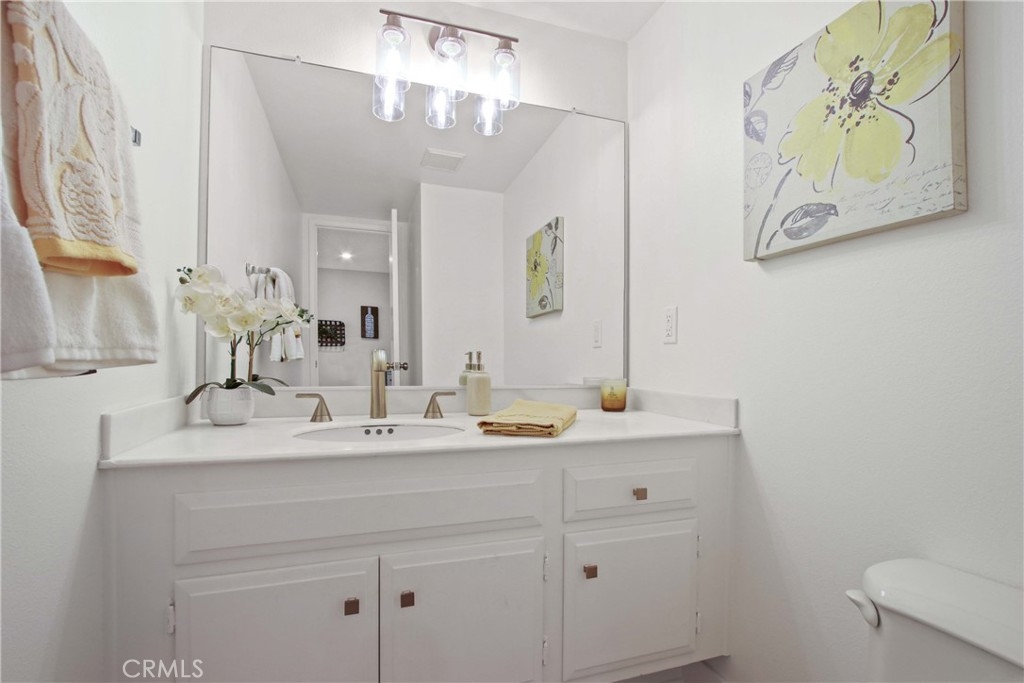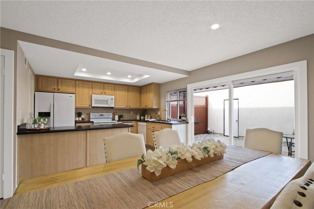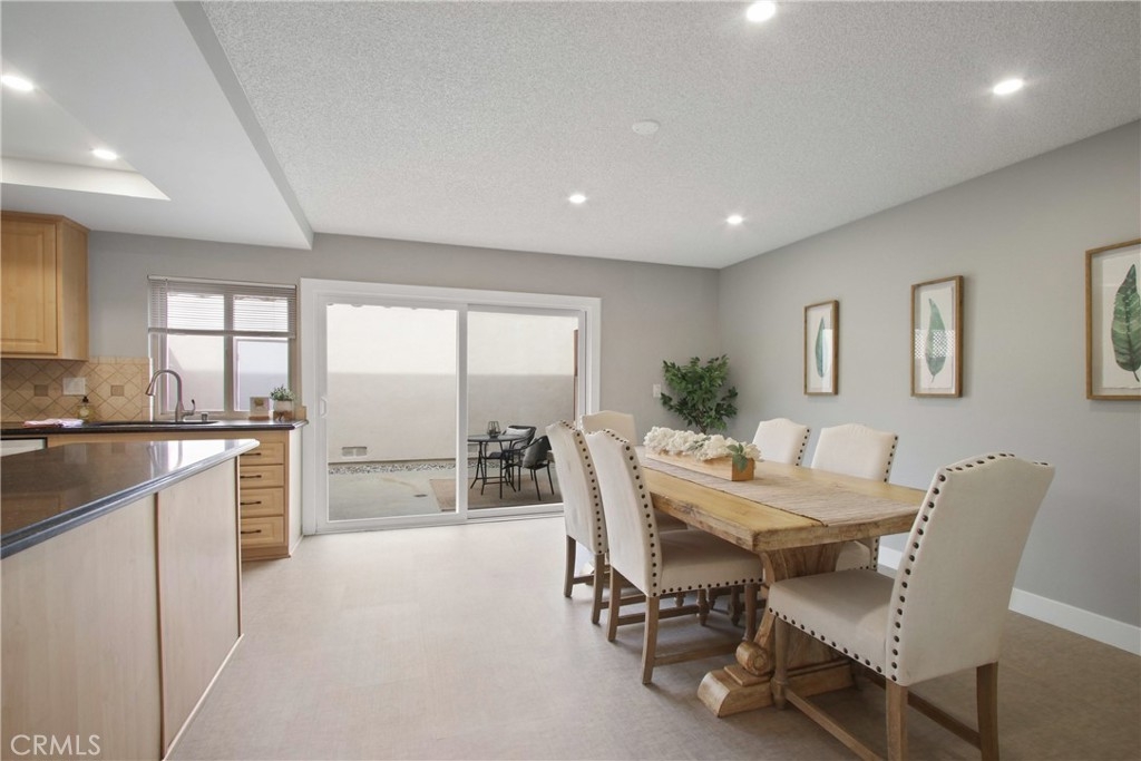 Welcome to The Gardens, a premier townhome community in San Pedro! This charming home is nestled on a tranquil green belt, resembling your very own private park! Upon entering, you'll be greeted by a bright and airy living room featuring, recessed lighting, fresh paint and newer laminate flooring. The kitchen and dining area have been updated with new luxury vinyl flooring, recessed lights, granite countertops and a spacious walk-in pantry for ample storage. The breakfast bar is perfect for a quick bite before starting your day! A sliding door leads to a private patio with large electric roller shade and leads to your oversized 2-car garage with lots of storage. Completing the main level is a convenient powder room with a new brushed nickel faucet, light fixture and luxury vinyl flooring. Upstairs, you'll find new carpeting throughout and a generous primary suite boasting a walk-in closet, a large seating area or office space and an additional closet plus an en-suite bath with new faucet, light fixtures and luxury vinyl flooring. You will also find two more light and bright bedrooms upstairs with a shared full bath and plenty of storage in the hallway. This unit has been E Piped for added security against water leaks. The well-managed HOA features a pool and tennis courts. This prime location offers easy access to stores, parks, schools, and the freeway, with the upcoming West Harbor development promising to enhance property values even further. Don’t miss out on this incredible opportunity!