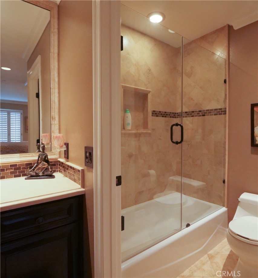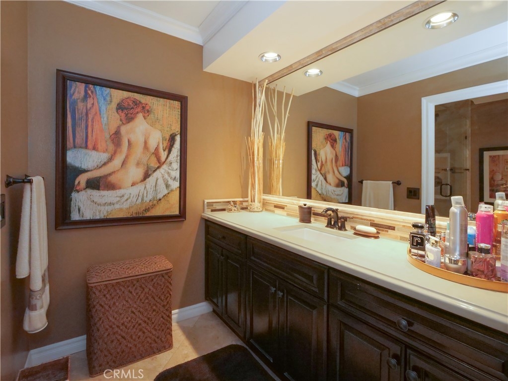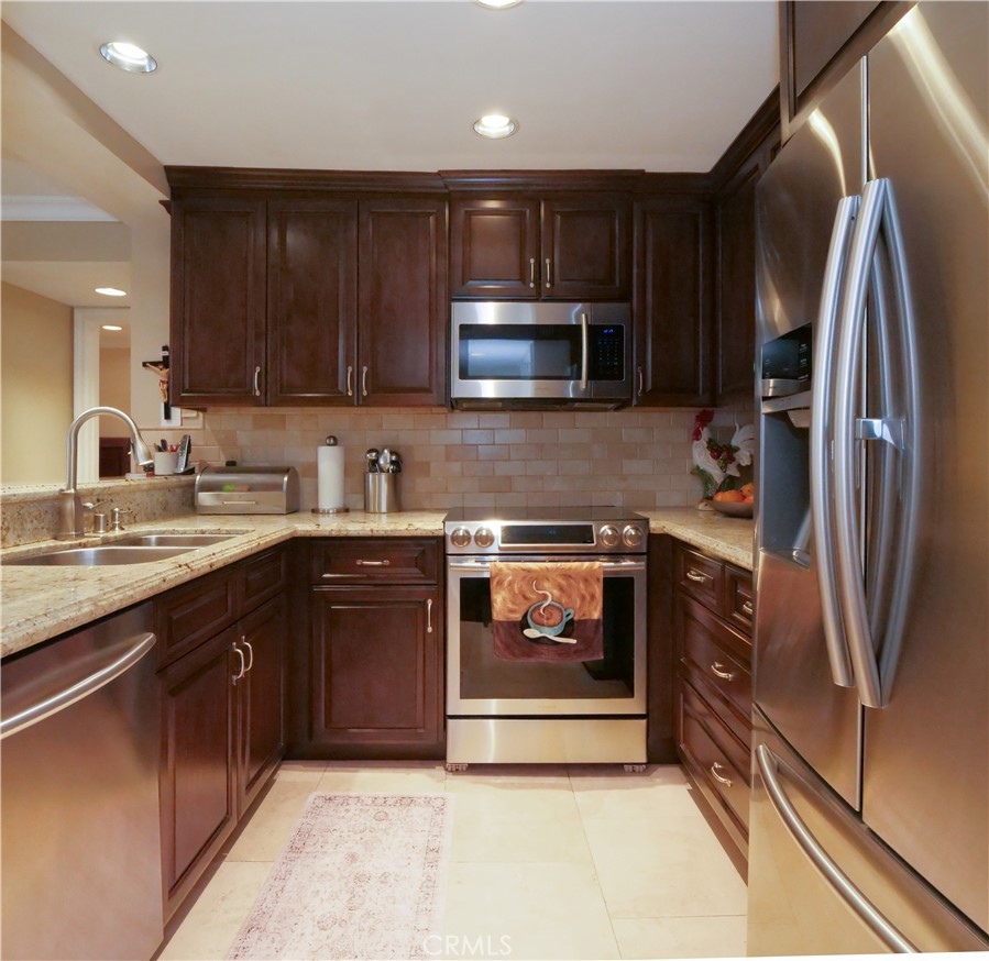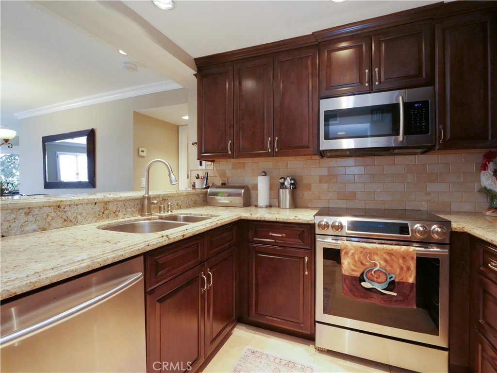 This unit is SPECIAL!! Completely remodeled with 2 separate Master Suites on either side of the main ONE LEVEL LIVING AREA. The living room has a dramatic fireplace with artificial gas logs and access to outdoor balcony. There is a separate formal dining room and up-to-date kitchen with extensive use of granite, stainless steel appliances (all included) and loads of storage. The location is perfect, walking distance to groceries, parks, schools, movies and easy access to the Harbor freeway and Long Beach. A spacious outdoor area with pool/spa and clubhouse completes the picture for great outdoor living also. This gated community is SPECIAL and this unit is "One of a Kind" Just bring your clothes and begin to live the good life.