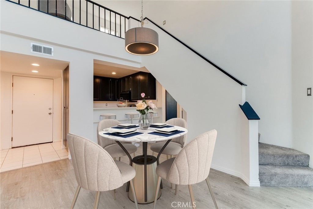 ***Very Popular gated community at "Harbour Walk". Bright and Airy Corner unit has extra natural light and Cathedral Ceiling only one common wall. One of the best floor plan, "Maisonette Style" - 2 bedrooms + Office/Den and 2 bathrooms. Move-In- Ready Condition. Just finished remodel - Modern style floor at living and dining area. New carpet at bedrooms, staircase and office/den. Kitchen feature Beautiful Quartz counter top, breakfast bar, New stainless steel stove, microwave and refrigerator. Living room with cozy fireplace. Both bedroom includes big walk-in-closet and private bathroom. Upstairs office space is perfect for the remote work. Direct access to the private patio from mater bedroom and living room. Storage room on patio. Community offers Pool, Spa and grill-picnic areas. Plenty of guest parking spaces inside of gate as well as outside. Close to major supermarkets, park, restaurants, banks, movie theater, fitness clothing stores and much more.