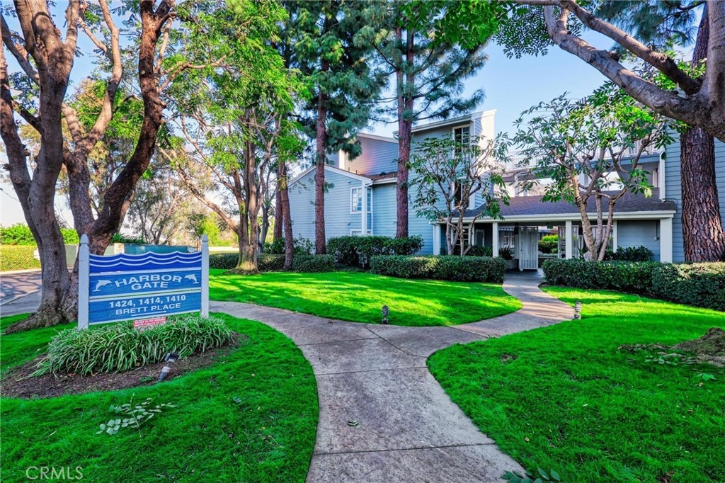 Are you seeking peace and tranquility? Discover it at 1424 Brett Place #355 in San Pedro! This light-filled home offers the soothing sounds of a calming waterfall just outside your door, along with the privacy you desire. Enter the secured, gated community and take the elevator to the third floor to experience this serene retreat. As you step into the foyer you'll be greeted by a pristine, open-concept home, thoughtfully designed and featuring new appliances, including a refrigerator, gas range, dishwasher, and microwave. The kitchen opens to a dining room with high ceilings, seamlessly flowing into a living room that features a gas fireplace with custom mantle and a sun-kissed balcony. The balcony offers stunning views of lush gardens, mature trees and a waterfall. Here you can expand your living space and savor a cup of coffee or enjoy an alfresco meal in the evening. Back inside the home offers separate quarters, with the primary bedroom with ensuite bath on one side and the secondary bedrooms, hall bath, laundry and storage on the opposite side. This home is meticulously kept and feels so good when you walk through the door and see and feel all that it has to offer you. Being on the top floor in the corner, you have no one above you and no one to the left of your home. It helps to secure the privacy and peace described before. The homeowner dues include water, trash, sewer, complex maintenance, and exterior insurance. Home comes with two side by side parking spots numbers 255 and 355. Another added bonus is that this unit comes with a storage closet outside of the home but in close proximity on the same floor for larger storage. This complex is close to shopping including Target, Home Depot, Ralphs, Sprouts, Marshalls, Pet stores, parks, and more. Easy access to the freeway and bridges which is just a quick jaunt down the street. This location is close to the public beach Royal Palms which is about 5 minutes by car. San Pedro is a gorgeous small town with so much growth happening right now at our waterfront. Check out https://www.westharborla.com/ which has information about the amphitheater, ferris wheel, shopping and restaurants coming to our water front and opening in 2025! This is an exciting time for San Pedro and buying this home will give you access to so many good things! Don't miss this one!