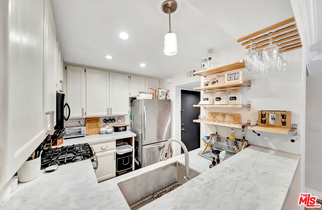 Spacious 2nd story condo located in a securely gated and well maintained complex. Association pool, spa and BBQ with view of the harbor. Convenient , walking distance location to shopping and restaurants. Easy access to 110 Fwy. 2 master suites and full bath each and walk-in closets. Includes Whirlpool refrigerator, stove, convection oven, microwave, disposal and newer Bosch dishwasher. Stackable washer/dryer. Custom coat rack, wineglass rack, gas fireplace mantel...too many custom features to list. Deep, SS kitchen sink, marble breakfast counter, wood grain tile flooring in kitchen and foyer, ceramic tile in bathrooms and wood laminate throughout. Marble kitchen and bath counter tops. Floating shelves and universal wallmount bracket for TV in living room. Central heating and A/C and Nest thermostat. Two balconies, an extra storage closet. Two assigned, subterranean parking spots and additional guest parking. This is a great place to call home!