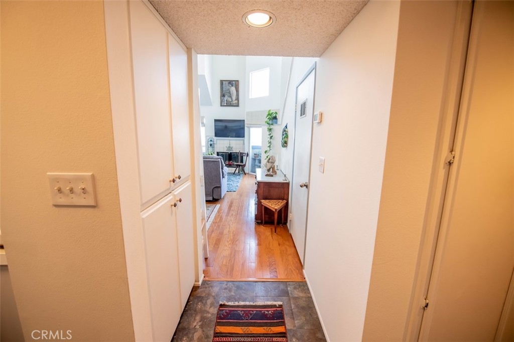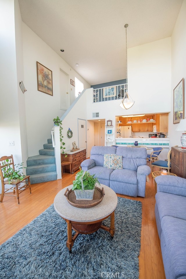 The cathedral ceiling and open floor plan of the living and dining area, along with the dramatic use of angles and windows, gives this condo a spacious, light and airy feel. Facing East, the living area, master bedroom, balcony and open loft bedroom enjoy magnificent views of mountains, lush treescapes, city lights and the Port. Indeed the brilliant colors of the sunrise and the sunset are especially striking, while custom roman shades give privacy, darkness, and intimacy. The effective organization of the unit's space enhances its practical and aesthetic feel and value. The balcony is an additional, lovely living space frequently visited by hummingbirds! There is surprisingly generous closet and storage space, including a large walk-in storage room next to the loft bedroom. This bedroom can also serve as a den or office. The unit has hardwood floors in the great room and the downstairs bedroom, a gas and log warm and cozy fireplace, all modern kitchen appliances, and a stacked washer and dryer. Steps away are a newly refurbished pool, spa with two hot tubes, and grill-picnic areas as well as two spaces across from one another in the gated parking garage. It is a short walk to many shops and restaurants with beautiful parks and beaches nearby. Harbour Walk is a beautifully tended gated community which is a must see!