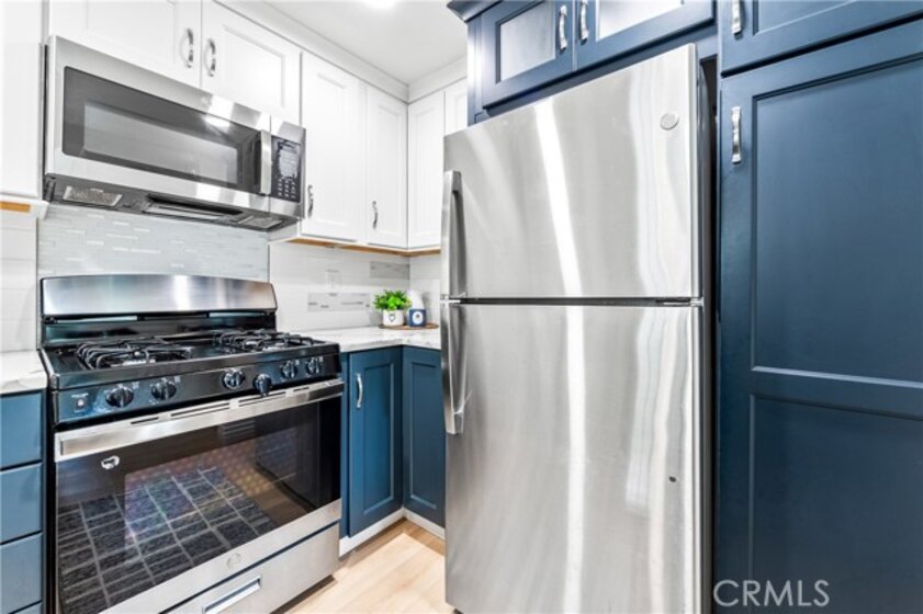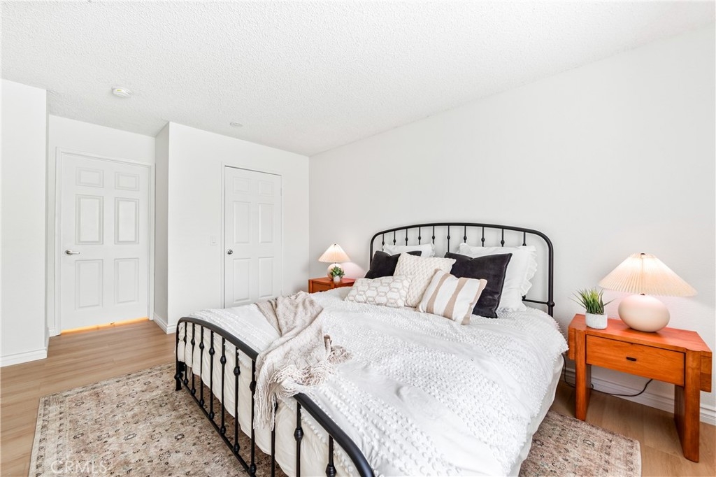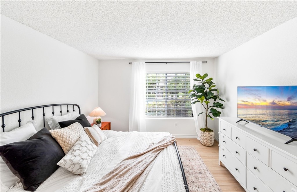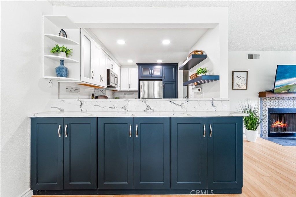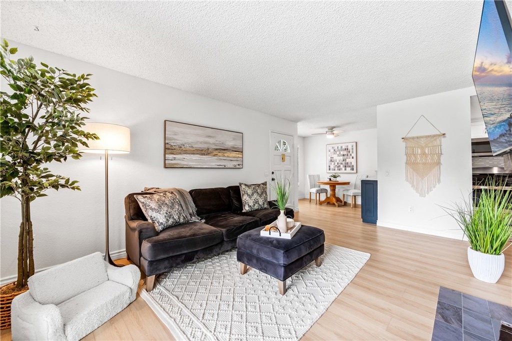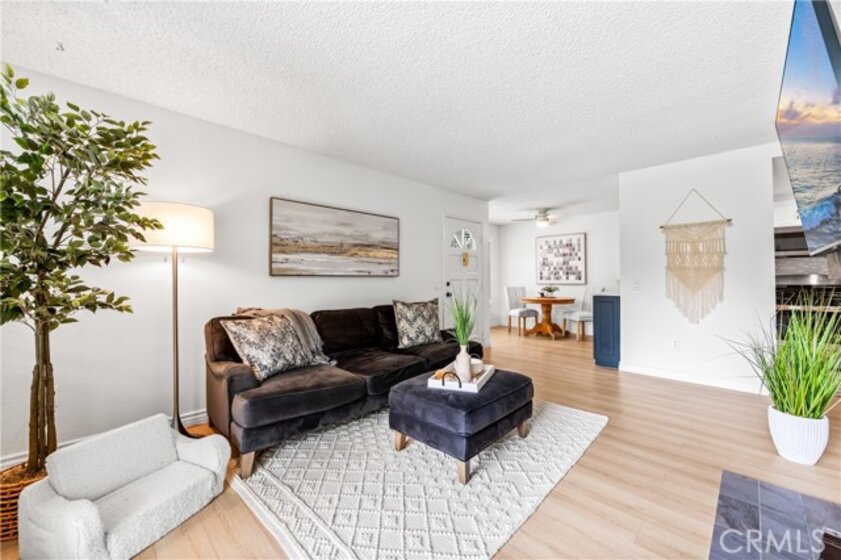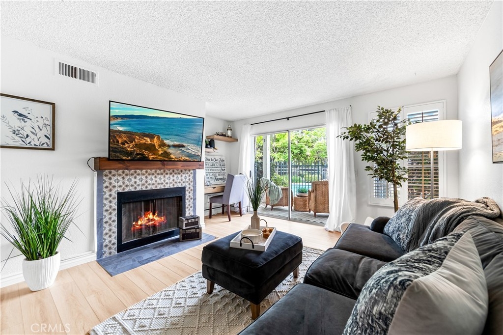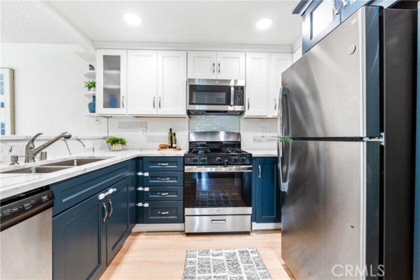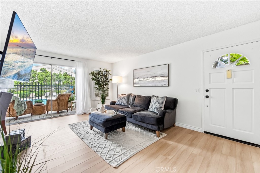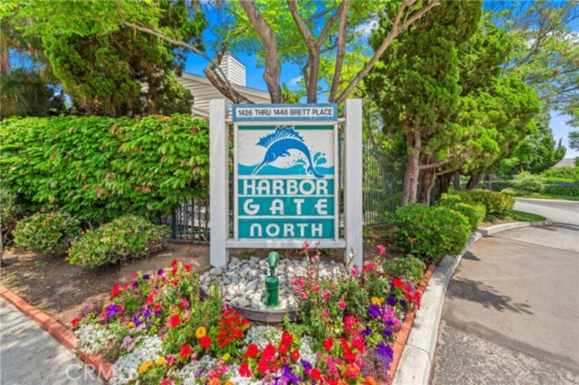 Welcome to your dream coastal retreat. This beautifully updated 2-bedroom, 2-bathroom condo is tucked inside one of San Pedro's most beautifully maintained gated communities, Harbor Gate North. This stunning corner-unit condo combines thoughtful upgrades, peaceful surroundings, and exceptional value—just minutes from the beach and ideal for commuting to either Los Angeles or Orange County. Step inside to an open-concept layout that feels both modern and welcoming. The designer kitchen features custom navy-blue cabinetry paired with crisp white upper cabinets, floating shelves, stainless steel appliances, and elegant wooden flooring throughout. Recessed lighting creates a warm ambiance, while a buffet-style cabinet in the dining area mirrors the kitchen's clean design—ideal for storage or for creating a cozy coffee bar. The unique pass-through buffet establishes a seamless space for entertaining. The spacious living room features a charming gas fireplace, surrounded by sand- and sea-hued tiles, and an expansive sliding glass door that opens to your oversized private patio. This patio is framed by mature trees that overlook the lush grounds and the stunning resort-style pool. And what a pool it is—truly a showstopper! A cascading waterfall flows gently into a stream that feeds a massive swimming pool and an oversized spa, creating a vacation vibe right at home. Despite this luxurious setting, your unit remains private, thanks to a manicured hedge that frames the view without obstructing it. Enjoy total privacy with a picturesque, resort-inspired view available 24/7. Both bedrooms are generously sized, with the primary suite offering a large walk-in closet and a sleek vanity area. The bathrooms are completely remodeled with glossy white quartz counters, bright white cabinetry, designer hardware, and polished tile backsplashes-every detail thoughtfully executed. This home features a detached tandem garage, ample storage space, and access to beautifully maintained grounds that are adorned with towering trees and expansive lawns. You’ll experience a sense of tranquility here that is rarely found in Southern California. Whether you’re a first-time buyer, a couple starting a family, or a commuter seeking peaceful coastal living without the high prices of Huntington or Newport, this location offers the perfect blend of lifestyle and luxury. Welcome to your private sanctuary in the heart of San Pedro! This is the one you’ve been waiting for!