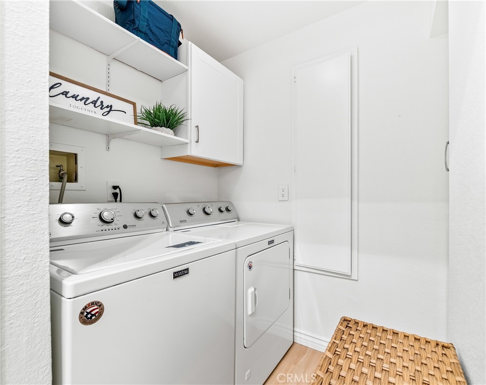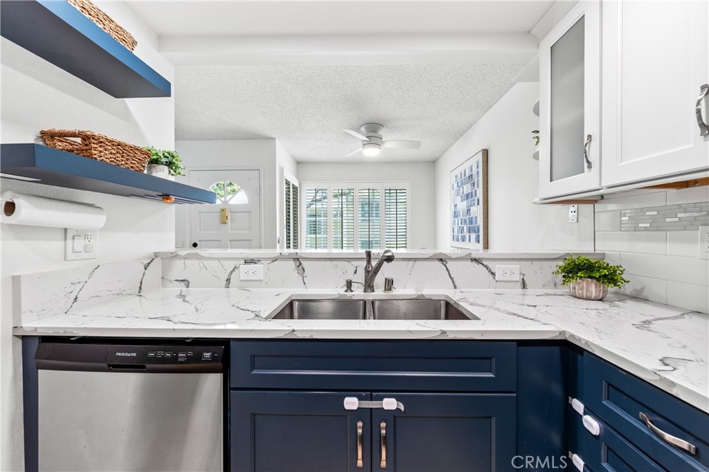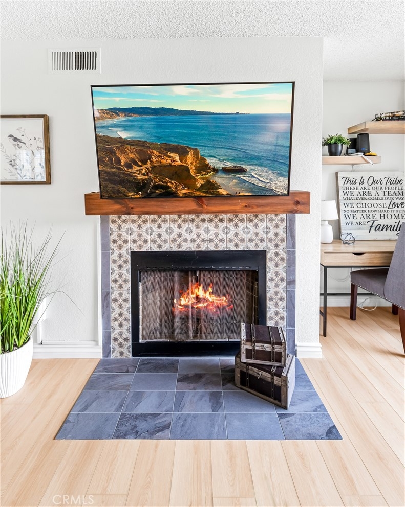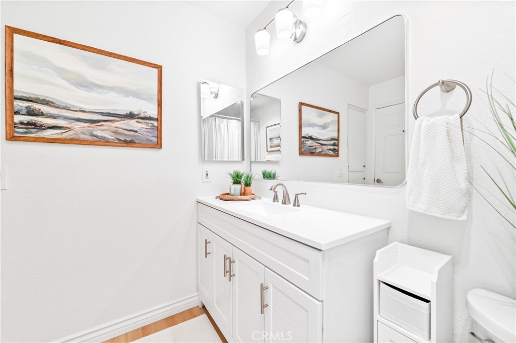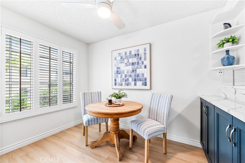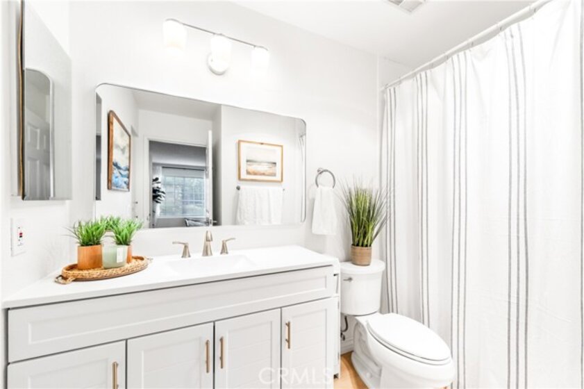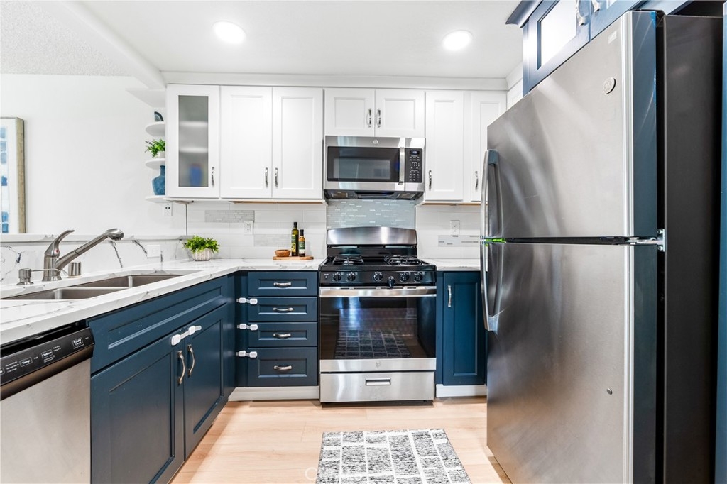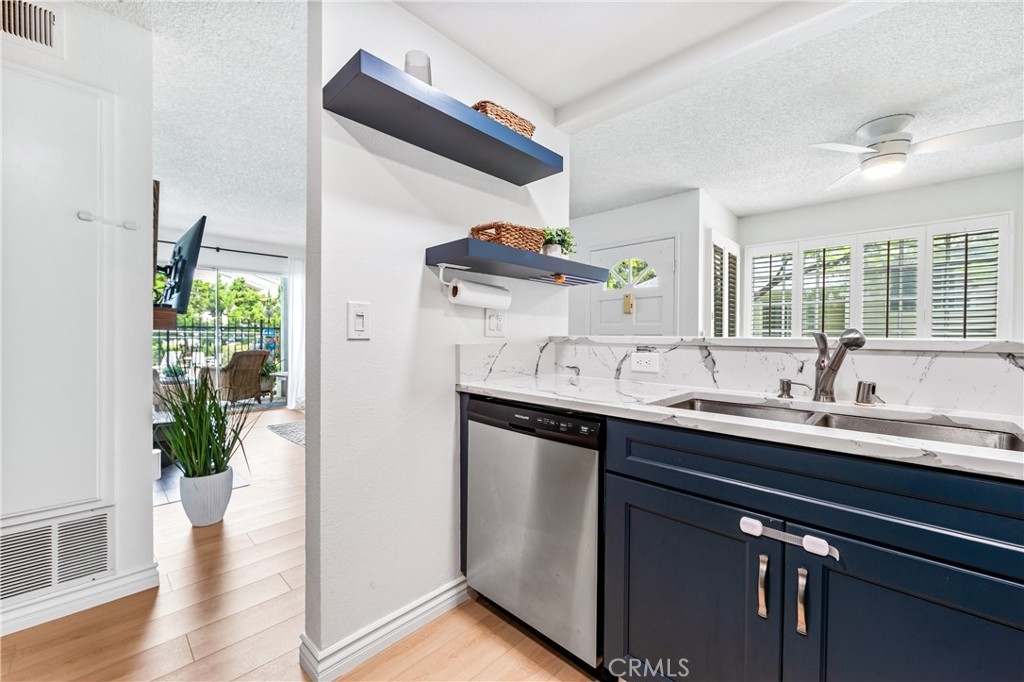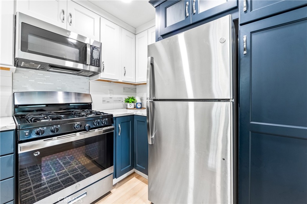 Welcome to your dream coastal retreat. This beautifully updated 2-bedroom, 2-bathroom condo is tucked inside one of San Pedro's most beautifully maintained gated communities, Harbor Gate North. This stunning corner-unit condo combines thoughtful upgrades, peaceful surroundings, and exceptional value—just minutes from the beach and ideal for commuting to either Los Angeles or Orange County. Step inside to an open-concept layout that feels both modern and welcoming. The designer kitchen features custom navy-blue cabinetry paired with crisp white upper cabinets, floating shelves, stainless steel appliances, and elegant wooden flooring throughout. Recessed lighting creates a warm ambiance, while a buffet-style cabinet in the dining area mirrors the kitchen's clean design—ideal for storage or for creating a cozy coffee bar. The unique pass-through buffet establishes a seamless space for entertaining. The spacious living room features a charming gas fireplace, surrounded by sand- and sea-hued tiles, and an expansive sliding glass door that opens to your oversized private patio. This patio is framed by mature trees that overlook the lush grounds and the stunning resort-style pool. And what a pool it is—truly a showstopper! A cascading waterfall flows gently into a stream that feeds a massive swimming pool and an oversized spa, creating a vacation vibe right at home. Despite this luxurious setting, your unit remains private, thanks to a manicured hedge that frames the view without obstructing it. Enjoy total privacy with a picturesque, resort-inspired view available 24/7. Both bedrooms are generously sized, with the primary suite offering a large walk-in closet and a sleek vanity area. The bathrooms are completely remodeled with glossy white quartz counters, bright white cabinetry, designer hardware, and polished tile backsplashes-every detail thoughtfully executed. This home features a detached tandem garage, ample storage space, and access to beautifully maintained grounds that are adorned with towering trees and expansive lawns. You’ll experience a sense of tranquility here that is rarely found in Southern California. Whether you’re a first-time buyer, a couple starting a family, or a commuter seeking peaceful coastal living without the high prices of Huntington or Newport, this location offers the perfect blend of lifestyle and luxury. Welcome to your private sanctuary in the heart of San Pedro! This is the one you’ve been waiting for!