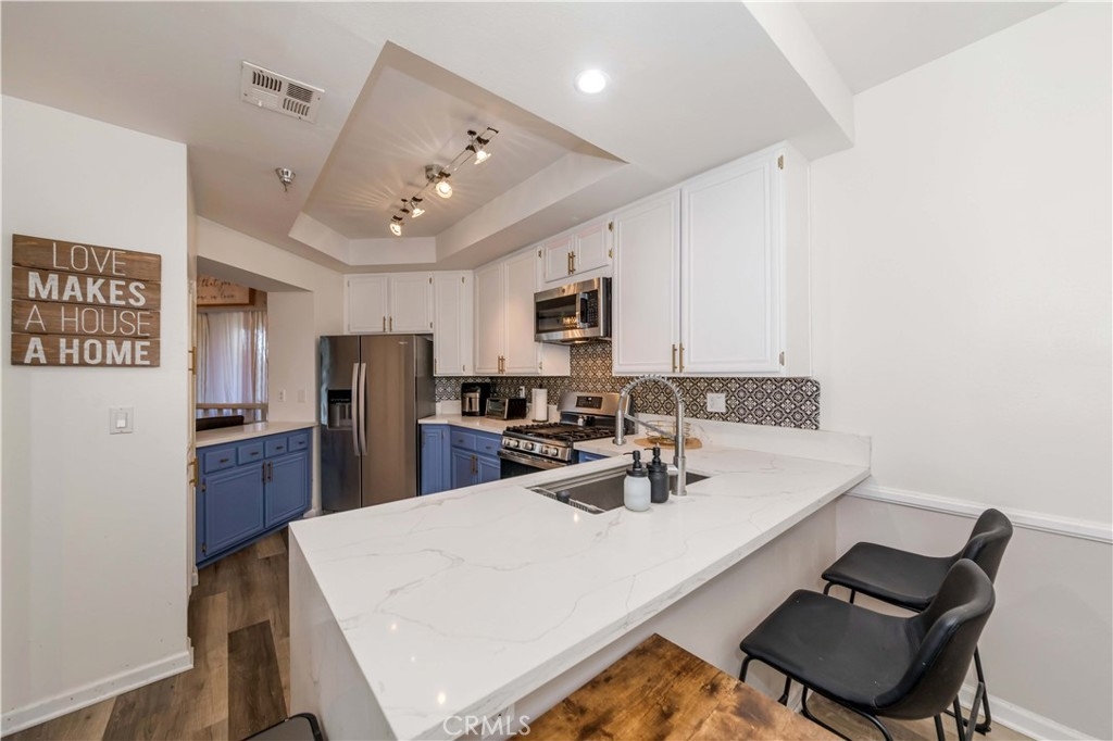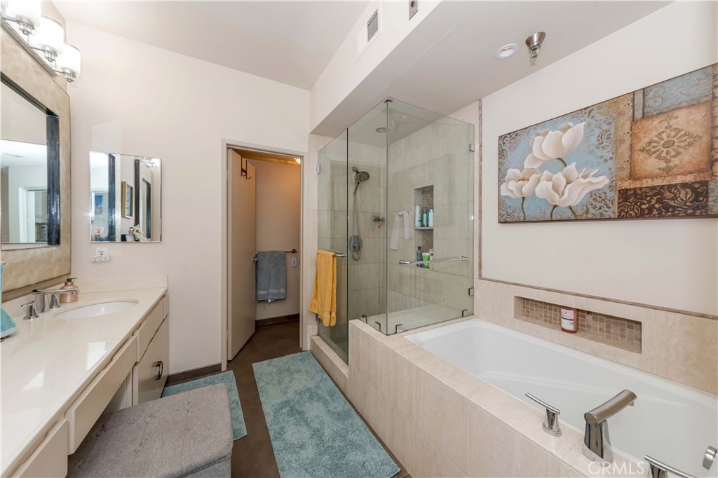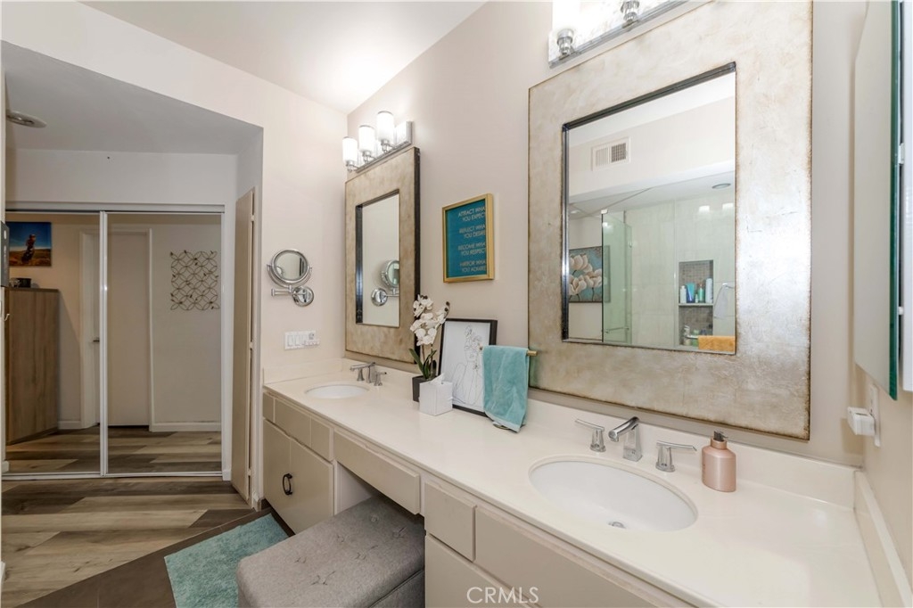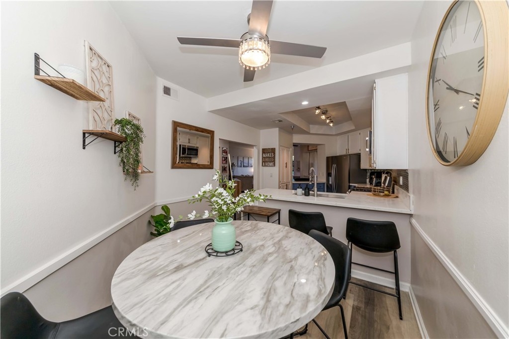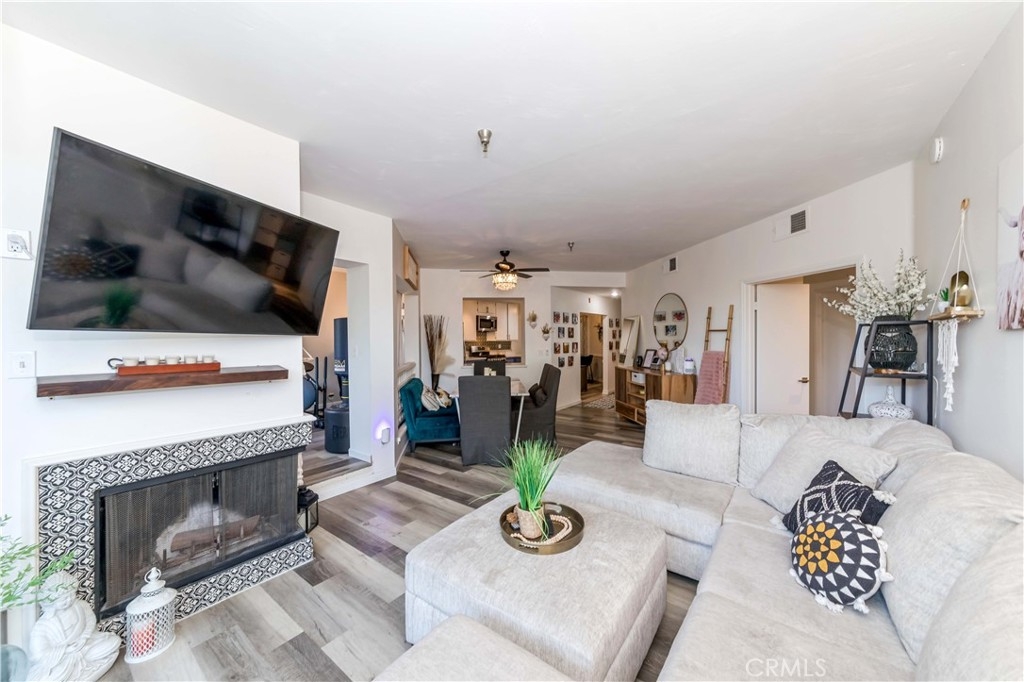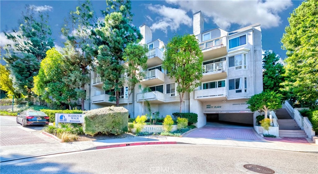 Welcome to The Terraces 1450 #105! This small 38 unit complex is a hidden jewel, tucked away among lush landscaping at the end of a cul-de-sac, but close to The Terraces shopping center and theaters. There are many shopping choices nearby as well as schools, parks and churches. This beautiful condo has almost 1,500 square feet of living space with a spacious, open floor plan. The living room features a cozy fireplace that leads to a private veranda for your morning coffee or entertaining space. Off the living room is an area that has a widow seat with built-in bookcases and could be used as an work-at-home office, work-out area, nursery, den or formal dining room! The two large bedrooms are spaced enough to give privacy to both. The en-suite primary bedroom offers a walk-in closet, a wall closet, a beautiful bathroom with double vanity, large soaking tub, separate shower, tile flooring and recessed lighting. The spacious kitchen features lots of cabinets, large counter space and has an adjoining dining area. The side by side laundry is conveniently located in the unit. Your two parking spaces (17 & 18) are easily accessible via elevator. There is plenty of guest parking for friends and family who visit! This well run complex features a beautiful relaxing pool, soak in the spa, or enjoy the recreation room with pool table or work out in the gym! This complex is accessible to major highways, freeways, the harbor, or a relaxing drive around the scenic Palos Verdes Peninsula with it's golf courses, fine dining and many hiking/biking trails. Welcome home!
