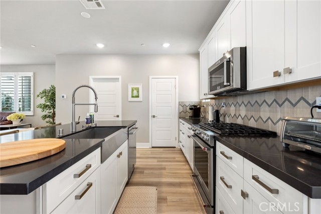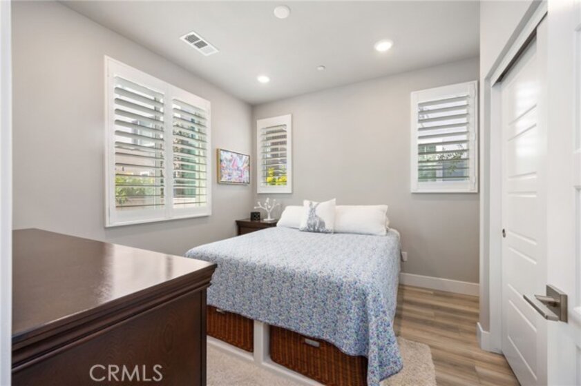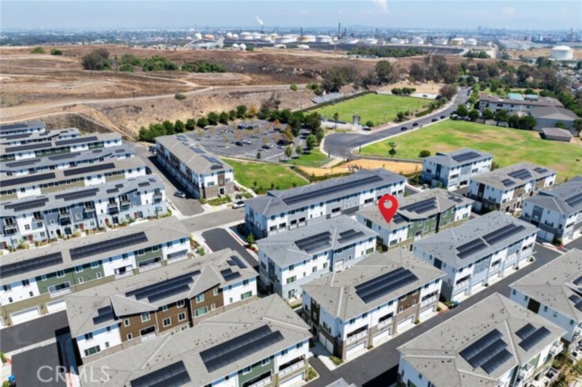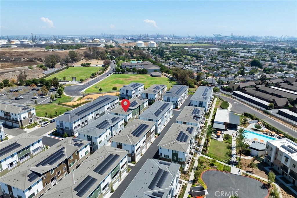 Welcome to this modern three-story residence in the heart of San Pedro, offering style, functionality, and comfort at every turn. As you enter this spacious end unit, you’re greeted by a private front patio that sets the tone for relaxed living. The entry-level features a spacious bedroom with its own full bathroom, perfect for guests or a private office. On the second floor, you’ll find an open-concept living, dining, and kitchen area flooded with natural light. Light-colored floors, recessed lighting, and a seamless layout create a warm, inviting atmosphere. The gourmet kitchen is a chef’s dream, showcasing white cabinetry, sleek black quartz countertops, stainless steel appliances, and a large eat-in island ideal for gatherings. Enjoy the sunny weather from the balcony to enjoy fresh air and neighborhood views. The top floor is home to the expansive primary suite, complete with an en suite bathroom featuring dual sinks and a large glass-enclosed shower. Also upstairs are two additional bedrooms, a full guest bathroom, and a convenient laundry area. Additional highlights include an attached two-car garage for easy parking and storage, paid of solar panels, upgraded plantation shutters and central A/C and Heat. Community features a pool and outdoor spaces. This stunning home combines contemporary design with everyday functionality—perfect for anyone seeking the best of coastal living in San Pedro!