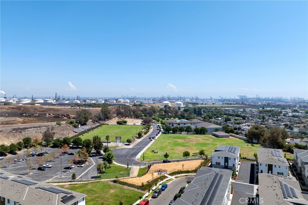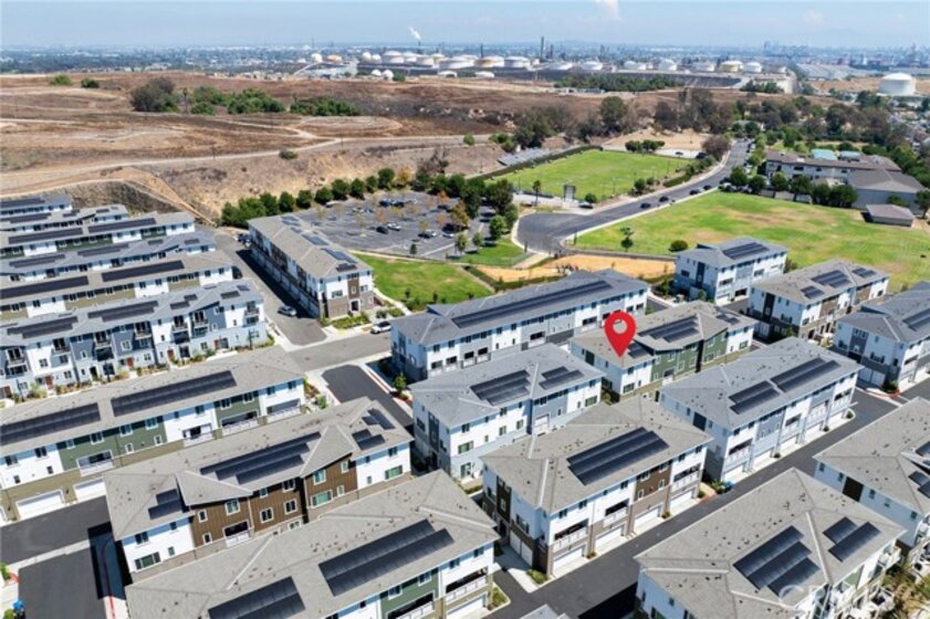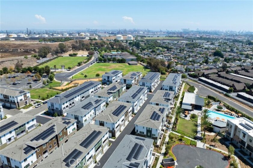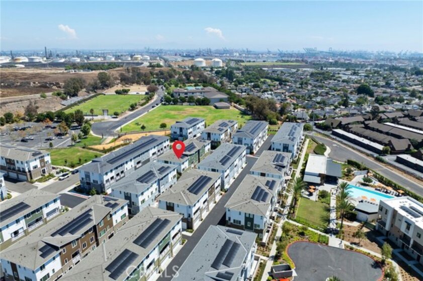 Welcome to this modern three-story residence in the heart of San Pedro, offering style, functionality, and comfort at every turn. As you enter this spacious end unit, you’re greeted by a private front patio that sets the tone for relaxed living. The entry-level features a spacious bedroom with its own full bathroom, perfect for guests or a private office. On the second floor, you’ll find an open-concept living, dining, and kitchen area flooded with natural light. Light-colored floors, recessed lighting, and a seamless layout create a warm, inviting atmosphere. The gourmet kitchen is a chef’s dream, showcasing white cabinetry, sleek black quartz countertops, stainless steel appliances, and a large eat-in island ideal for gatherings. Enjoy the sunny weather from the balcony to enjoy fresh air and neighborhood views. The top floor is home to the expansive primary suite, complete with an en suite bathroom featuring dual sinks and a large glass-enclosed shower. Also upstairs are two additional bedrooms, a full guest bathroom, and a convenient laundry area. Additional highlights include an attached two-car garage for easy parking and storage, paid off solar panels, upgraded plantation shutters and central A/C and Heat. Community features a pool and outdoor spaces. This stunning home combines contemporary design with everyday functionality—perfect for anyone seeking the best of coastal living in San Pedro!