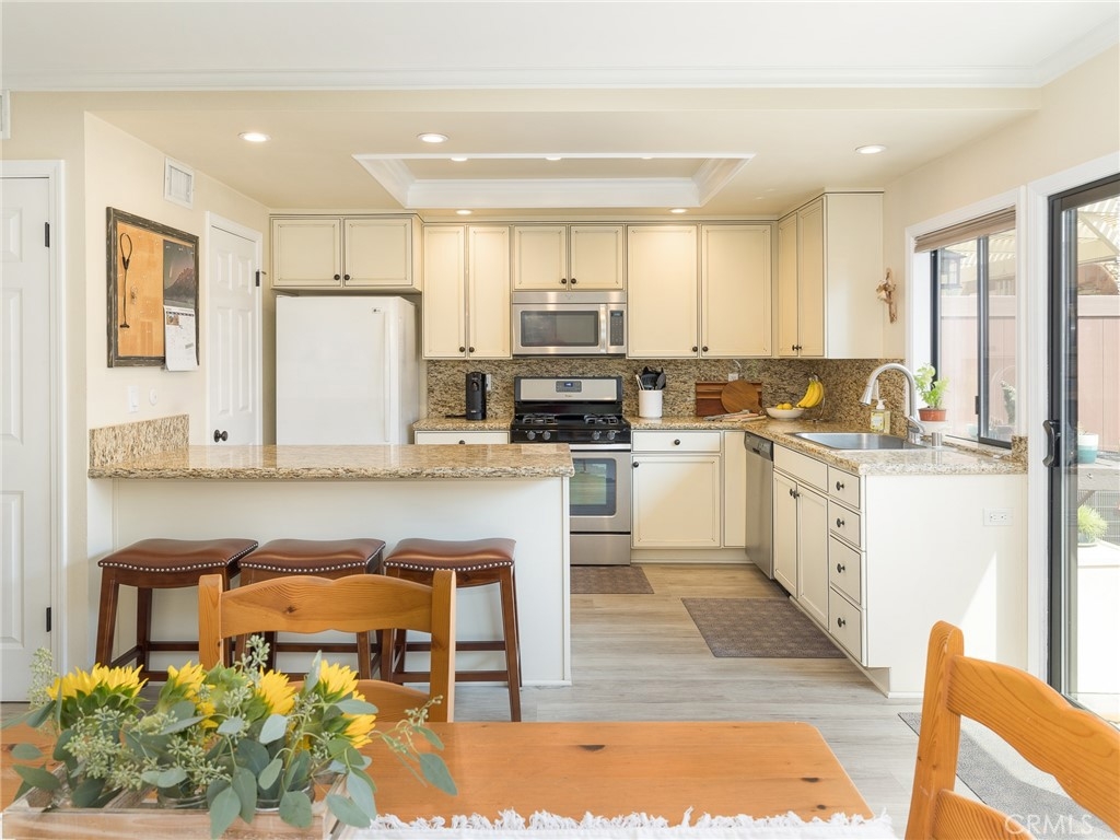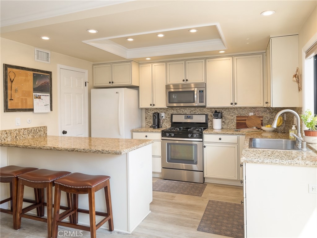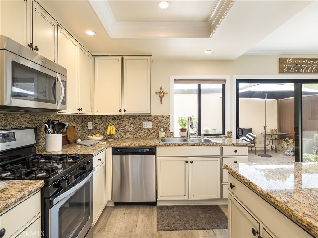 Absolutely Decorator Perfect Condition!! Large 2 Level, 4 Bedroom 2 1/2 Bath Gardens Townhome, with a Totally remodeled Gourmet Kitchen with High End Stainless Steel Appliances, and 3 Elegant Bathrooms. Gorgeous Laminate Flooring throughout the lower level. Clean smooth ceilings and Crown Molding Throughout. Extra Large Rear patio for outdoor entertaining. Sparkling Swimming Pool and Tennis Courts a few steps away. Large, Private, Oversized, Double Detached Garage adjacent to the Rear Patio. A Must to see. Priced for immediate sale. Hurry, this one won't last.