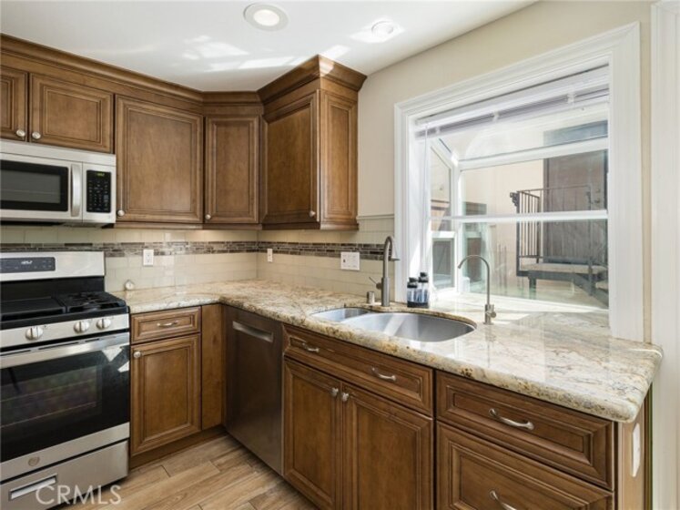 Welcome to 1625 Stonewood Ct., "The Gardens" is nestled in a quaint pocket of San Pedro! This warm and quiet home offers many wonderful amenities including remodeled primary bathroom and 1/4 downstairs bathroom, upgraded a/c unit, new water heater, duct work, upgraded electrical panel, Milgard windows throughout, plantation shutters, stainless steel refrigerator, stove, and Bosch dishwasher. Custom cabinetry with soft closing drawers, Italian porcelain flooring mixed in with wood flooring, this home is ideal for you! Four carpeted bedrooms, all upstairs with 2 bathrooms. Additional storage in hallway cabinetry. The primary and 4th bedroom offer ceiling fans for additional cooling! Off the kitchens french doors awaits your private patio for morning sun and coffee. Private 2 car garage with washer and dryer plus ample storage! This is a turnkey home ready for you!