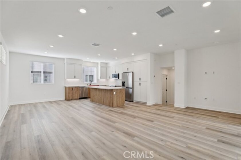 Thoughtfully upgraded and move-in ready, this all-electric 3-story home at The Heights at Ponte Vista features approximately 1,875 sq. ft. of designer-curated living space. The kitchen is a true showstopper, featuring quartz countertops in Crisp Stria, a full tile backsplash in White with Arctic White grout, and Metro Slab cabinet doors in a sophisticated split finish — Tuscany Cypress lowers paired with Satin White uppers at the island and primary suite. Stainless steel appliances include a slide-in induction range, an over-the-range microwave hood, and a refrigerator. Upgraded LVP flooring runs through the main living level and staircase, designer tile anchors all bathrooms and the laundry room, and plush upgraded carpet finishes the bedrooms. The living room opens through a 3-panel multi-slide door to a private deck — perfect for California indoor-outdoor living. Matte black hardware, plumbing, and shower enclosures highlight the upgrades, and Bath 3 features a tiled shower. A laundry closet with included stacked washer and dryer is conveniently located on the third floor. The home features whole-house faux wood blinds in white. Bedroom 4 is pre-wired for a future kitchenette — ideal for multigenerational living or a private guest suite. The common area is a true resort-style amenity with an association Pool, Spa, Fitness Center, Fire Pit, Recreational Trails, and Open Space. Photos and virtual tour are of the Plan 2 model home and used for representational purposes only.