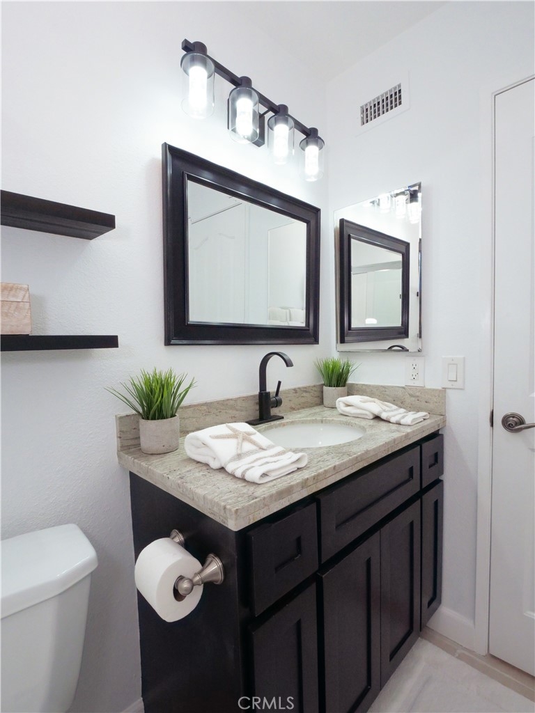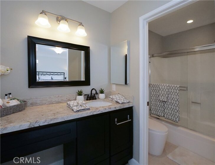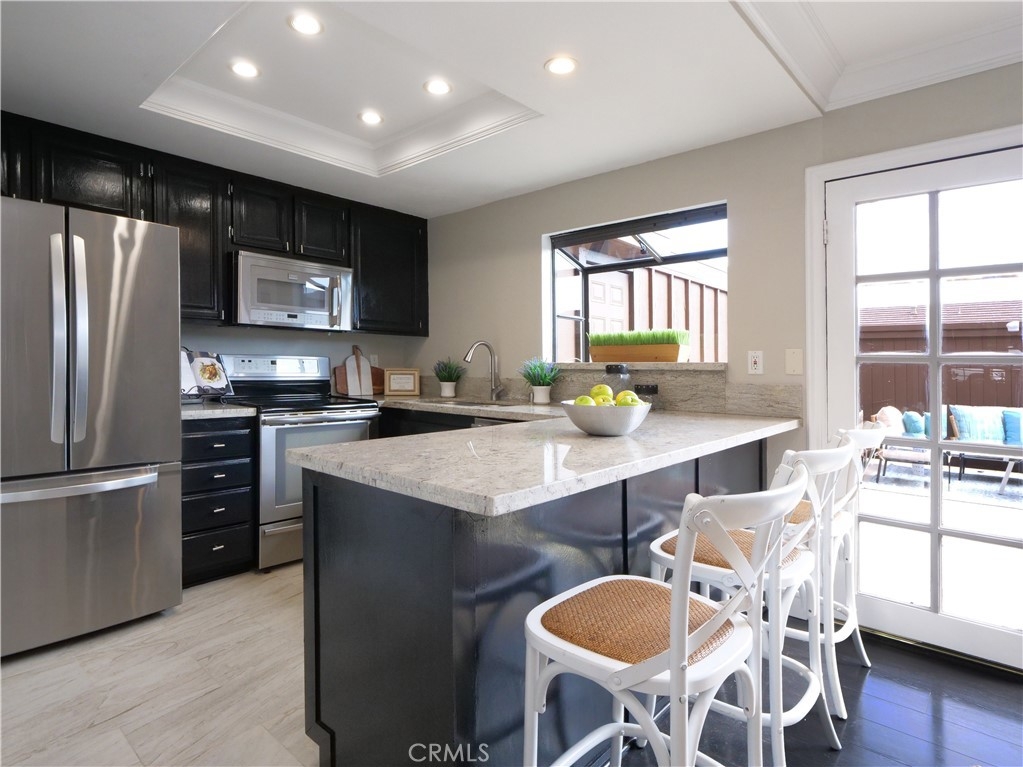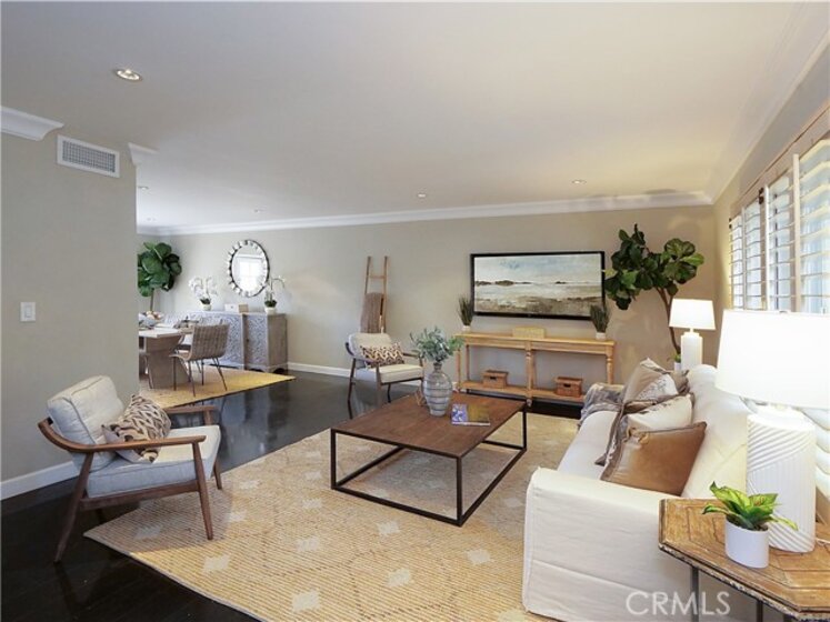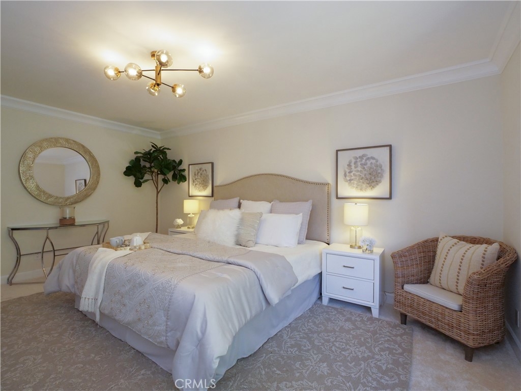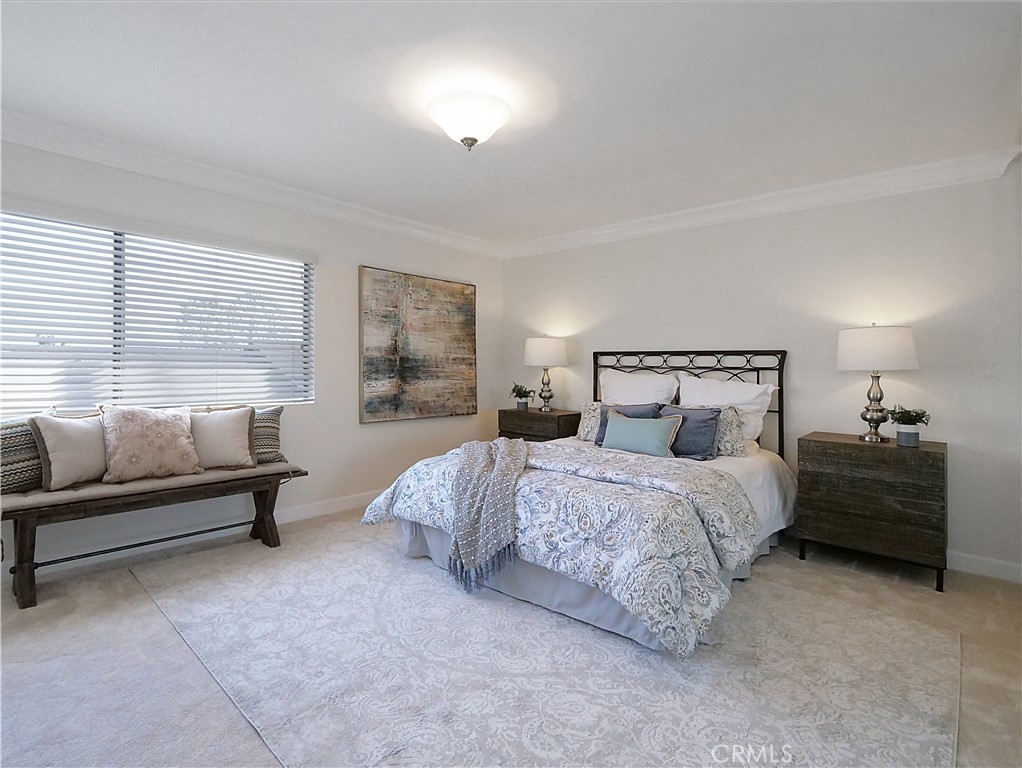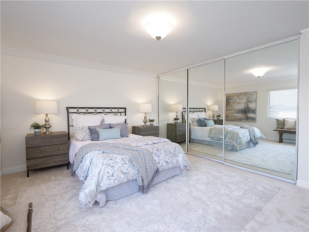 Welcome to this beautifully upgraded townhome located in the highly desirable community known as The Gardens. This stunning, move in ready unit offers 2 Primary bedrooms, located upstairs each with their own private updated bathrooms. Well-maintained a grassy front lawn and mature trees that leads you to the inviting entrance. As you enter, you will surely note an open-concept Great room with laminate wood flooring as well as smooth ceiling, recessed lighting and elegant crown molding. This spacious Great room opens seamlessly to dinning area and a delightful private patio which provides perfect for indoor and outdoor living experience and entertaining as well as family gatherings. As you continue through, you will find a tastefully remodeled kitchen, featuring granite counter tops and stainless steel appliances. The expansive patio is located above the garage and offers privacy for your relaxation. Another desirable future of this unit is the indoor laundry area located in the patio entrance way. There are more upgrades which include, HVAC system, new carpets for both bedrooms, Electronic Car Charger in the attached 2 car garage with extra space for storage. Enjoy the community pool and tennis courts in this resort style community. Walking distance to shops, restaurants and good access to the 110 freeway. Close proximity to the new upcoming LA water front! Beautiful home, lush surrounding, great location, convenient access. This unit has it all!