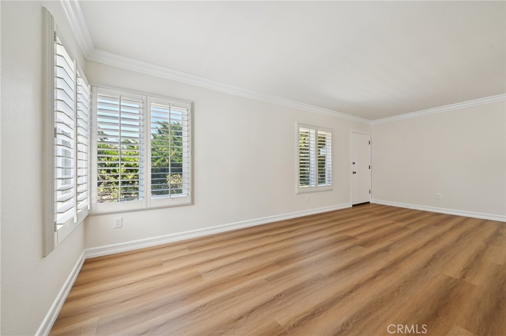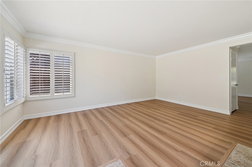 Over $25,000 Price Improvement! Welcome to your own little oasis in The Gardens; a peaceful, tucked away corner end unit that feels like a true retreat from the busy city. This charming townhome offers 1,572 square feet of warm and inviting space, featuring new luxury vinyl on the first level, newer dual pane windows and sliding doors, and plantation shutters throughout to keep things comfortable and quiet inside. The living room is bright and roomy, with a separate dining area, a powder room, and a flexible family space that flows right into the kitchen. The kitchen is equipped with granite counters, stainless steel appliances, and ample cabinetry, everything you need to whip up a quick meal or entertain with ease. Upstairs, you'll find two spacious primary bedrooms, each with its own bright and airy en-suite, perfect for relaxing and recharging in total privacy. Step outside to your own private patio, ideal for morning coffee, evening wine, or simply enjoying some quiet time. Since this unit backs up to the rear of the complex, you’ll also enjoy added privacy and convenient guest parking. Surrounded by tree lined paths, and you’ll also have access to tennis courts, a sparkling pool, and a community center. Close to shopping, restaurants, and the 110 Freeway are just minutes away. Don't miss this one!