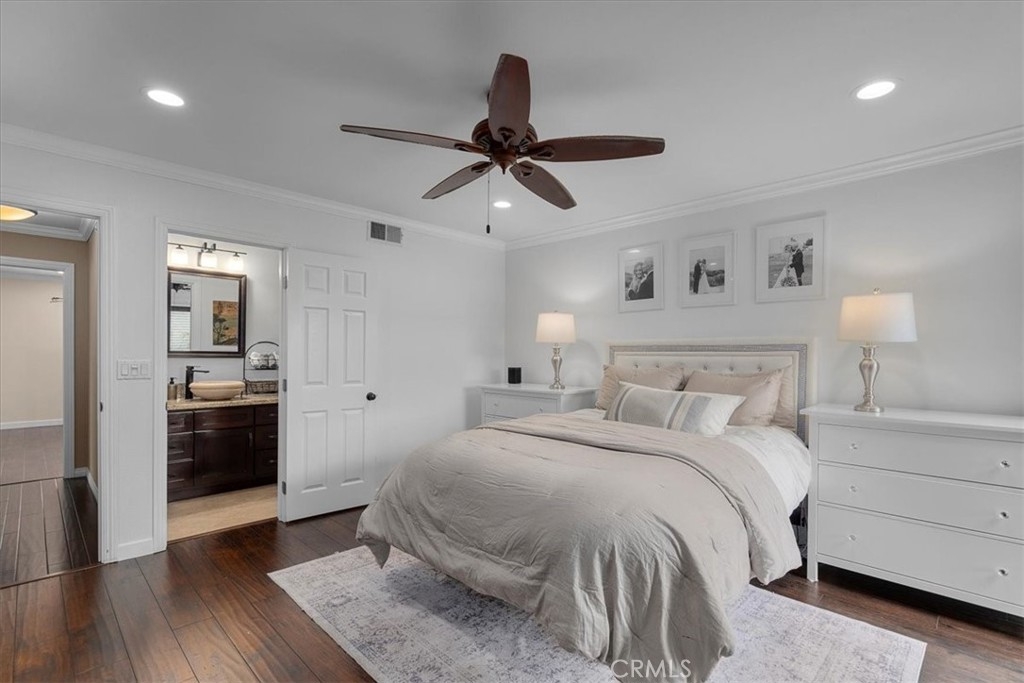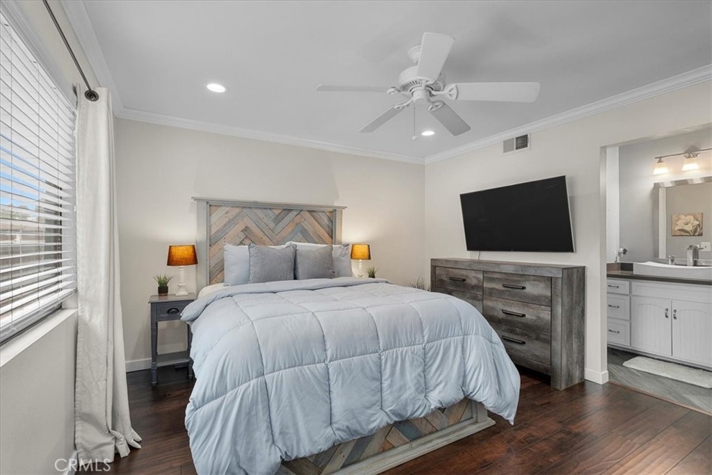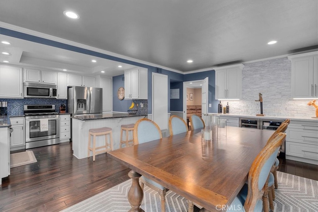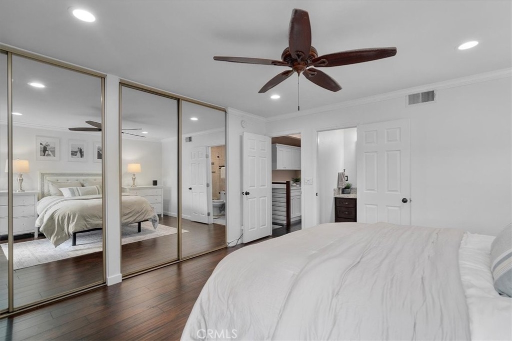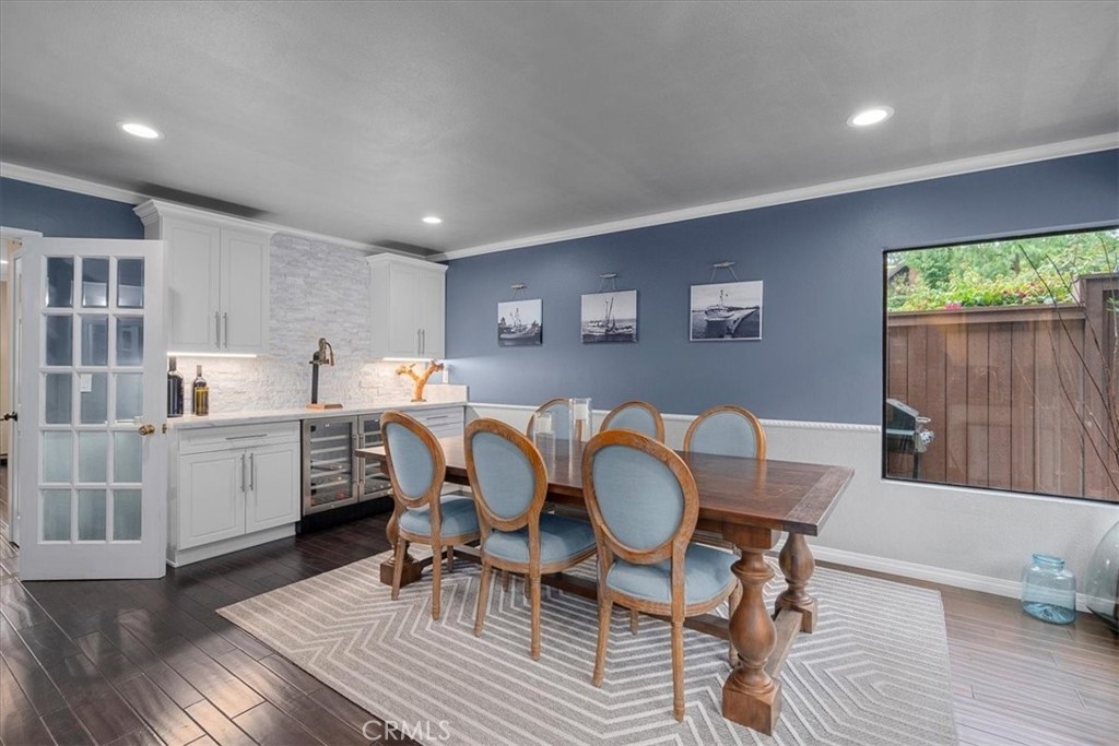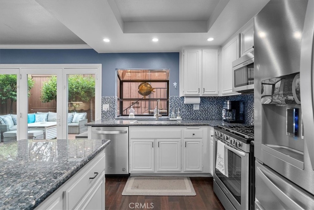 MOTIVATED SELLER!! REDUCED PRICE! Welcome home to this beautifully remodeled end-unit within the coveted enclave of “The Gardens!” This home welcomes you into the spacious living room with hardwood floors, recessed lighting, and dual panel windows that run throughout the home, along with plantain shutters and a slick staircase railing that provides a modern and custom design. The living room leads you into the bright and open dining room that has been remodeled with a stunning wine bar designed with beautiful white cabinetry, quartz counters, stone backsplash, and a wine fridge - perfect for entertaining and hosting. Providing an open concept feel, the dining room flows seamlessly into the kitchen fit with a long counter that has barstool seating, white cabinets and blue accents to flow with the dining room, and newer stainless steal appliances. The wall of windows and glass door provide an indoor/outdoor feel and leads you out to the back patio. The patio offers more length than most units, allowing plenty of room for extra seating, a BBQ area, and even planting your own garden. The hanging lights bring a nice ambiance whether you are hosting or just enjoying some peace and privacy under the night sky. Upstairs there are two primary suites each with their own remodeled bathroom, recessed lighting, laminate floors that match the hardwood floors, dual panel windows, and one room that has its own balcony with a sliding glass door. As an end unit with only one shared wall, this home comes with rare extra large closets in both bedrooms (finished with drywall and flooring) ideal for extra storage, a playroom for kids, more clothes, or whatever fits your needs! This home sits on the corner of Mount Shasta and Westmont, providing plenty of available street parking - great for someone with multiple cars, big cars that don’t fit in the garage, entertaining guests, and/or those who want to use the garage as a work shop or man/ma’am cave. Additional bonuses include an entry level half bathroom, pantry, central AC, and a private 2-car garage with a laundry area and storage. The Gardens is San Pedro’s most sought after community known for its lush greenbelts, functional homes, tennis courts, and pools. Centrally located, this home is near schools, parks, restaurants, and shopping; convenient for commuters whether you’re heading to the freeway or the beach cities. Whether you like to entertain or prefer peace and privacy, this home fits any persons needs. Welcome home!
