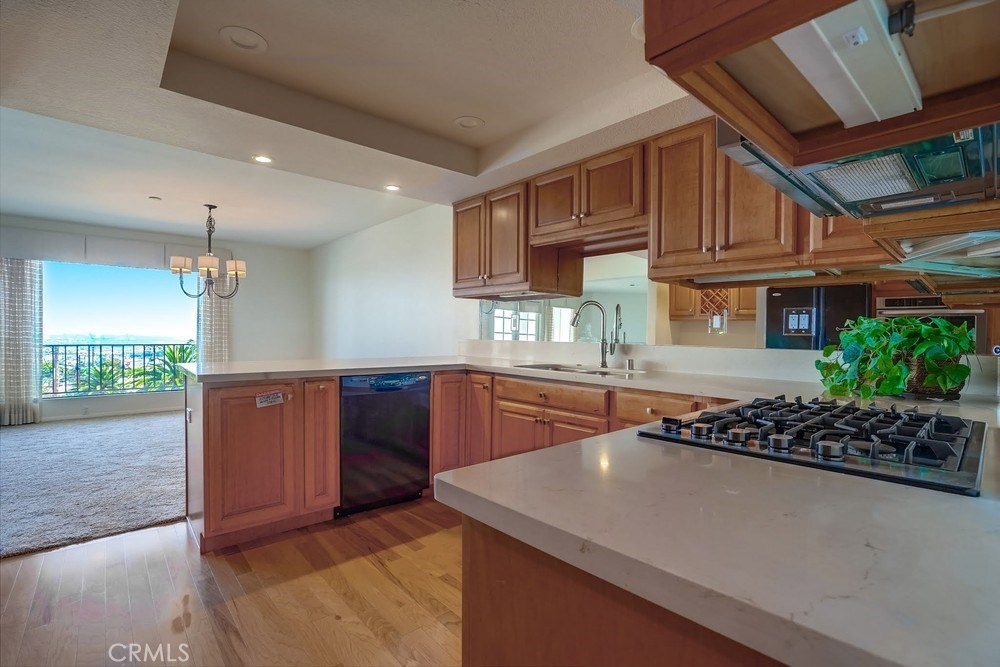 Elegance and Luxury with SPECTACULAR panoramic VIEWS of ocean, harbor, bridge, and sparkling night views! REMODELED KITCHEN/BATHROOMS. ONE-LEVEL and great location in the desirable and impressive "The Estate" complex. NO STEPS and near elevator. Great location on the VIEW SIDE away from Western and rooftops. Gorgeous KITCHEN REMODEL approximately 2 years ago with quartz counters, breakfast bar, separate pantry. Convenient laundry area. Fabulous MASTER BATH recently REMODELED with frame less shower door, double sinks and great storage. Hall bath REMODEL just completed and is spectacular! Spacious entry, beautiful living room with fireplace, and a large formal dining area. French doors open to the large patio. CENTRAL A/C. Included are washer, dryer and refrigerator. Gated indoor parking for two cars is near the elevator. Large storage room is in garage area and 2 storage closets are off the patio. Amenities include a huge pool that is solar heated from Memorial Day to Labor Day, large spa that is heated year round, beautiful clubhouse, showers, sauna, full kitchen and outdoor BBQ. Near shopping, ocean, and parks! Call for appointment!