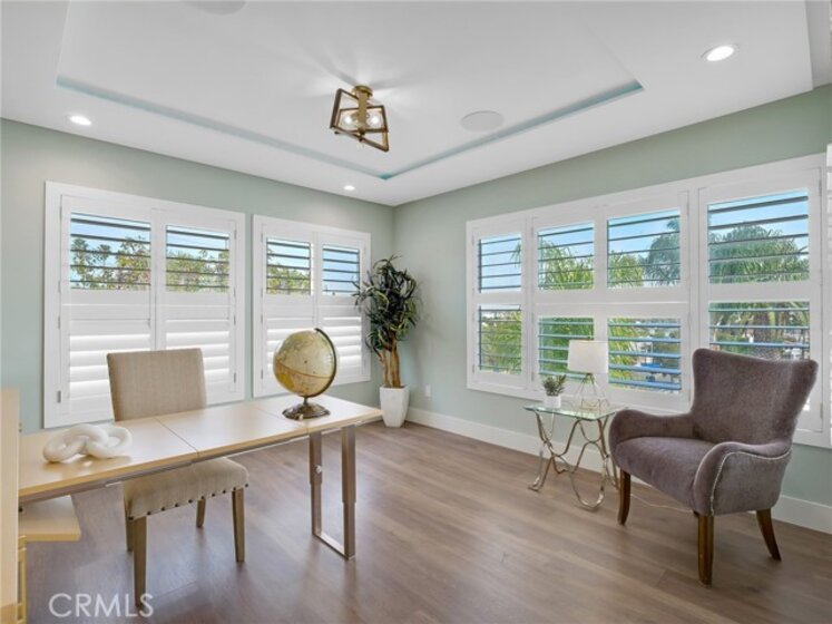 Enjoy breathtaking marina views from this exceptional, one-story condo—the largest unit in the complex—located in a premier top-corner position with only one shared wall and no neighbors above.---This rare layout offers privacy, quiet, and single-level living seldom found in coastal condos. The home was extensively reimagined and redesigned by the current owner with a custom floorplan unique to the building.---Soundproofing was professionally engineered with the expert engagement of Veneklasen Sound Engineers, including underlayment beneath the entire flooring, real cork wood floors for added acoustic insulation, and double drywall on the sole shared wall and in the primary bedroom.---Every bedroom features solid-core doors with invisible SOSS hinges, enhancing both sound control and a clean, modern aesthetic.---The chef’s kitchen, newly added wet bar, and all bathrooms feature custom European cabinetry, quartz countertops, and full-height tile backsplashes and/or shower enclosures.---The kitchen is further appointed with a 36” Wolf range and hood, brand-new 48” built-in KitchenAid refrigerator/freezer, Bosch speed oven/microwave, combination oven, warming drawer, and integrated panel dishwasher, plus Delta plumbing fixtures throughout.---A walk-in pantry and separate laundry room add everyday convenience.---The primary suite includes a modernized bath with a separate toilet room, a wet-room-style shower with a built-in air-jet tub, and a luxurious oversized walk-in closet with custom built-ins.---A newly added bonus room, concealed behind a hidden bookcase door, offers flexible use as an office, guest room, or optional fourth bedroom.---Additional custom built-ins are featured in the foyer, every bedroom closet, and a bonus-room desk that folds seamlessly into a drawer.---The home is fully wired for distributed audio, televisions (including in the balcony storage room), and a wireless network (smart-home ready; components not included).---Expansive zero-transition indoor-outdoor living is achieved through dual stacking doors opening to a balcony overlooking the marina. The unit includes three parking spaces, already wired for an electric vehicle charger.---This is a land lease property: the condominium is owned while the land is leased.---At the end of the lease term, the land may be purchased at fair market value (see land lease for exact details), allowing buyers to secure an extraordinary, fully renovated home at a compelling value. Community gym.