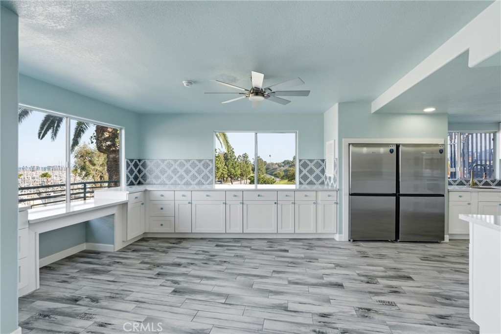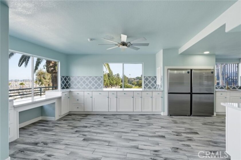 Completely remodeled from top to bottom, this stunning waterfront condo offers breathtaking Cabrillo Marina and Pacific Ocean views in one of San Pedro's most sought-after coastal positions. Every detail has been thoughtfully upgraded — from the open-concept living space with luxury ceramic tile flooring, new LED lighting, and a sleek electric fireplace, to the chef's kitchen featuring 36" quartz countertops, high-end Forno stainless steel appliances, a Midea double convertible refrigerator and dishwasher, built-in drawer microwave, and designer tile backsplash. The home also boasts a new electrical panel, luxury ceiling fans in every room, and fully modernized systems throughout — true turn-key condition inside and out. Three spacious bedrooms each come equipped with large flat-screen TVs, and a private patio delivers unobstructed marina views with the ocean breeze and passing cruise ships as your daily backdrop. Three underground parking spaces and a private storage unit round out the package. Located in the heart of San Pedro's rapidly evolving waterfront district, you're minutes from dining, marina access, and coastal attractions — with the highly anticipated West Harbor LA development, 2028 Summer Olympics waterfront events, FIFA fan experiences, and the US Space Force installation all nearby. Land lease property: the condo is owned while the land is leased, with the option to purchase at fair market value at lease end — allowing buyers to own a spacious, premium coastal home at exceptional value.