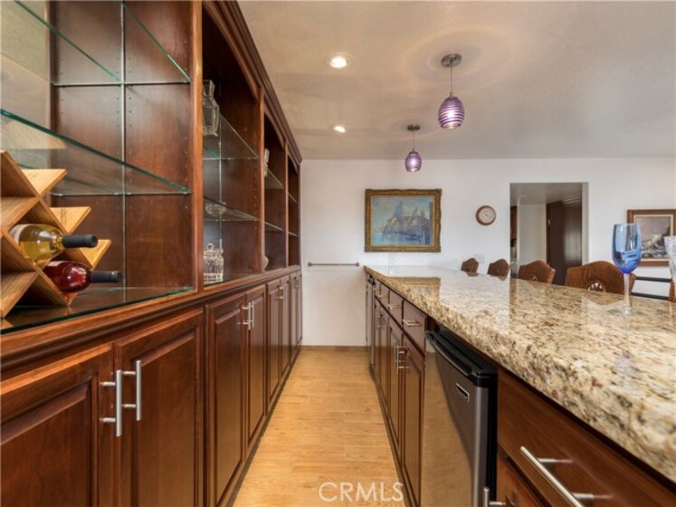 A beautifully remodeled(2016) 1736 sq ft (BTV) gated townhome is on market. THIS IS A LONG TERM LAND-LEASE COMPLEX...31 years left on lease: $1130.00 a month and due to IRS TAX CODE 1055, "Redeemable ground rent" the cost is TAX DEDUCTIBLE. Check with your CPA. $429 HOA fee. There are two good-sized bedrooms, two full baths with spa tubs and a half bath. The home has solid elegant cherry wood cabinets, drawers, closets, high end granite countertops in bathrooms, kitchen and a custom bar with two refrigerators. The unit has a lovely fireplace, double glazed windows, recessed lighting, huge safe, an air-conditioning unit in living room and tiled balconies off living room and one master bedroom. There is a small view of ocean. There are two side by side parking spots and your own walk-in storage room in a secured gated subterranean garage. Pool,spa, workout room plus, right next to Cabrillo Beach Marina and the 22nd Street Landing restaurant. The Tommy Bahama furniture and flat screen televisions are negotiable. Stainless washer, dryer, refrigerator are included.