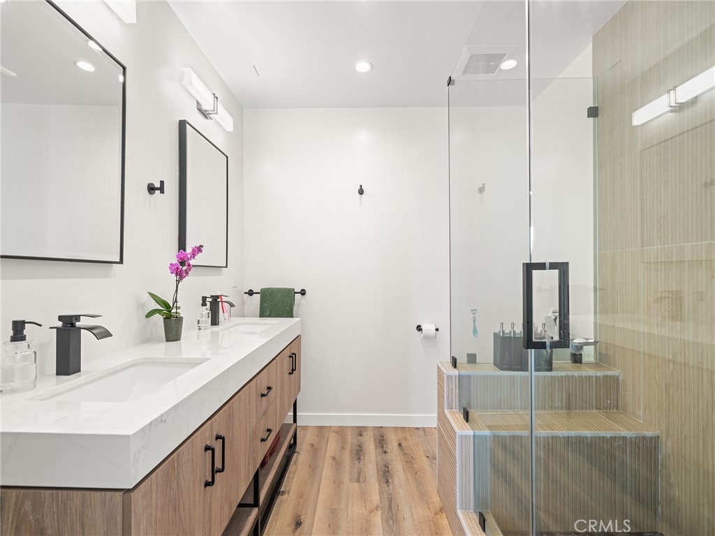 Wake up to sweeping ocean views in this beautifully upgraded San Pedro residence, where elevated design meets vibrant coastal living. Purchased in July 2024 and enhanced with approximately $60,000 in high-end upgrades, the seller’s relocation creates a rare opportunity to own a truly turn-key ocean-view home. The views are a MUST SEE! The open-concept main level is designed for both style and entertaining, showcasing dramatic 180-degree ocean vistas, sun-filled living spaces, and elegant luxury vinyl wood flooring throughout. The chef’s kitchen impresses with crisp white cabinetry, quartz countertops, and stainless-steel appliances, seamlessly flowing to a spacious ocean-view balcony—perfect for sunset cocktails or morning coffee. A chic guest bathroom completes this level. Downstairs, the primary suite offers refined comfort with plush new carpeting, a custom built closet, and a spa-inspired primary bathroom. Sliding doors open to a private, gated west-facing yard, ideal for pets, sun-soaked lounging, or outdoor entertaining. The second bedroom provides a tranquil, tropical backdrop—perfect for guests or as a home office or gym—and features a custom-built walk-in closet. A thoughtfully designed laundry room with built-in storage adds everyday convenience. Additional upgrades include curated window treatments throughout and designer finishes that elevate every space. Located within a secure gated community featuring a resort-style ocean-view pool, this residence places you moments from San Pedro’s waterfront parks, dining, shopping, and nightlife—offering luxury coastal living with effortless access to everything the area has to offer. Make sure to check out the video tour!