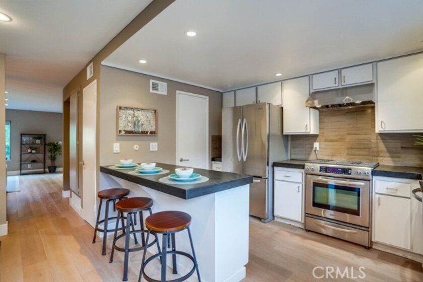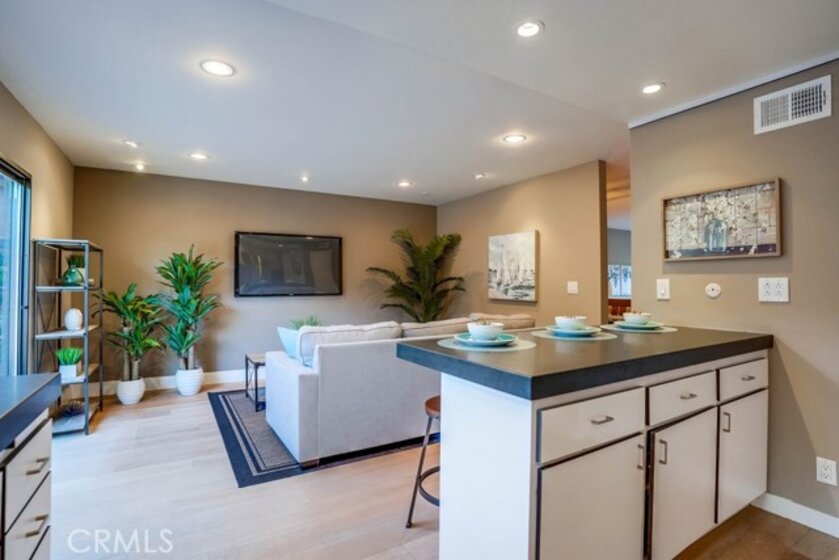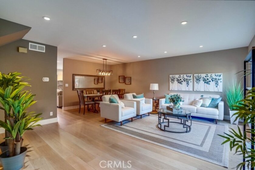 Welcome to this beautifully updated Sierra model townhome in the highly desirable Gardens. This large 1,566 sq. ft 3 bedroom 3 bath home features solid wood floors downstairs, new waterproof laminate flooring upstairs, fresh paint and recessed lighting. The LARGE master en-suite features 2 large closets and an updated bathroom. The modern open concept kitchen features a large pantry, KitchenAid stainless steel appliances, and breakfast bar. There is plenty of room for entertaining with a formal living room, formal dining area and separate family room. The patio features newer pavers and drain. The AC unit and heater have been updated as well. The detached 2 car garage includes plenty of shelving for storage and a laundry area. This community offers lush landscaping and resort style living including both a pool and tennis court. MUST SEE!!