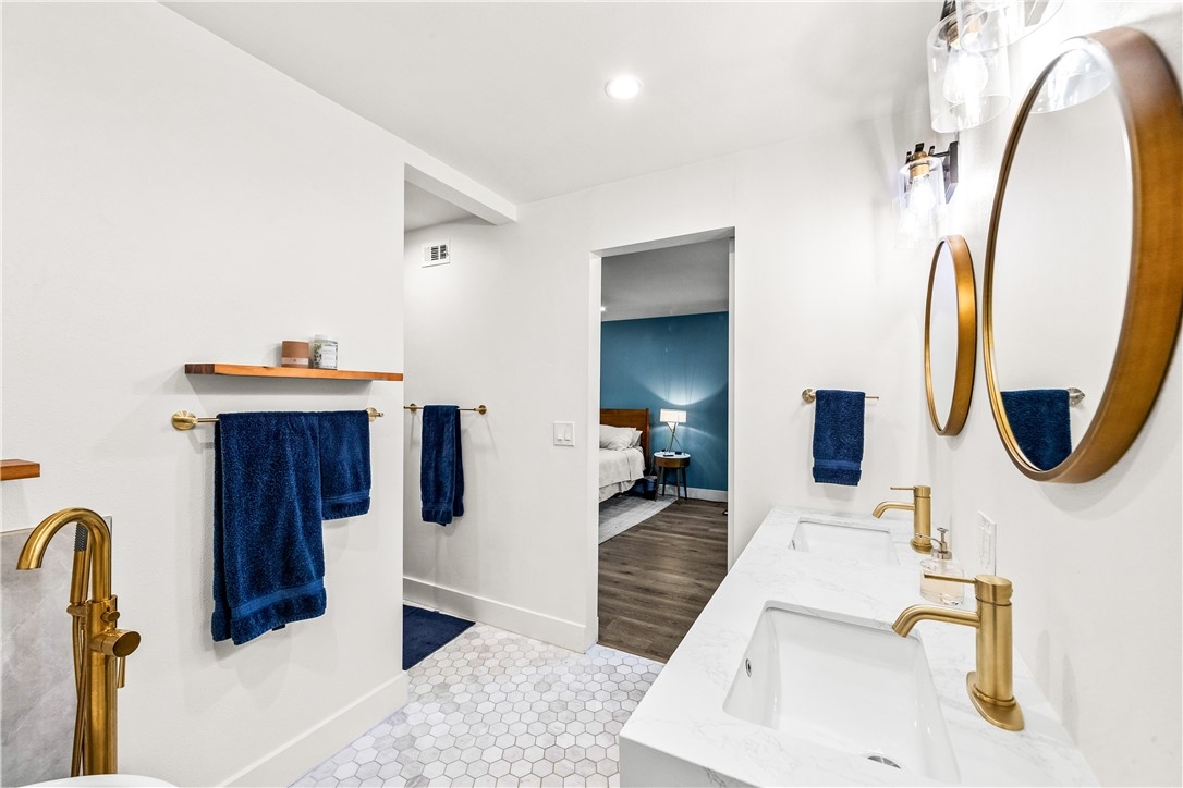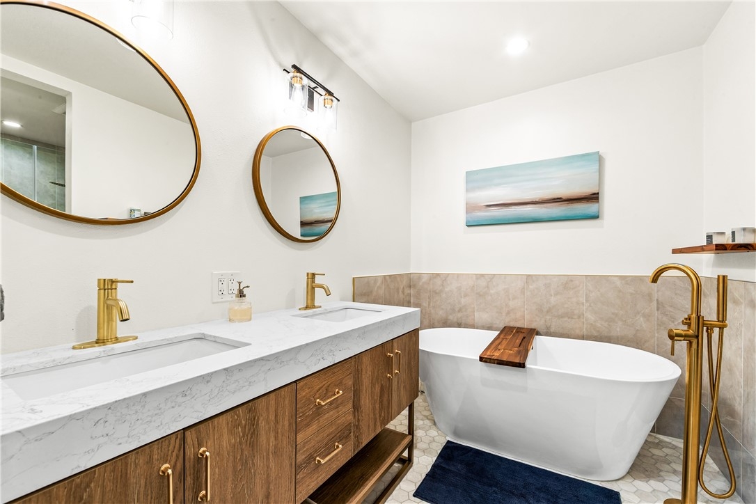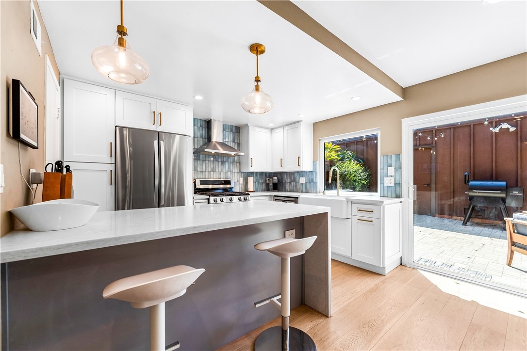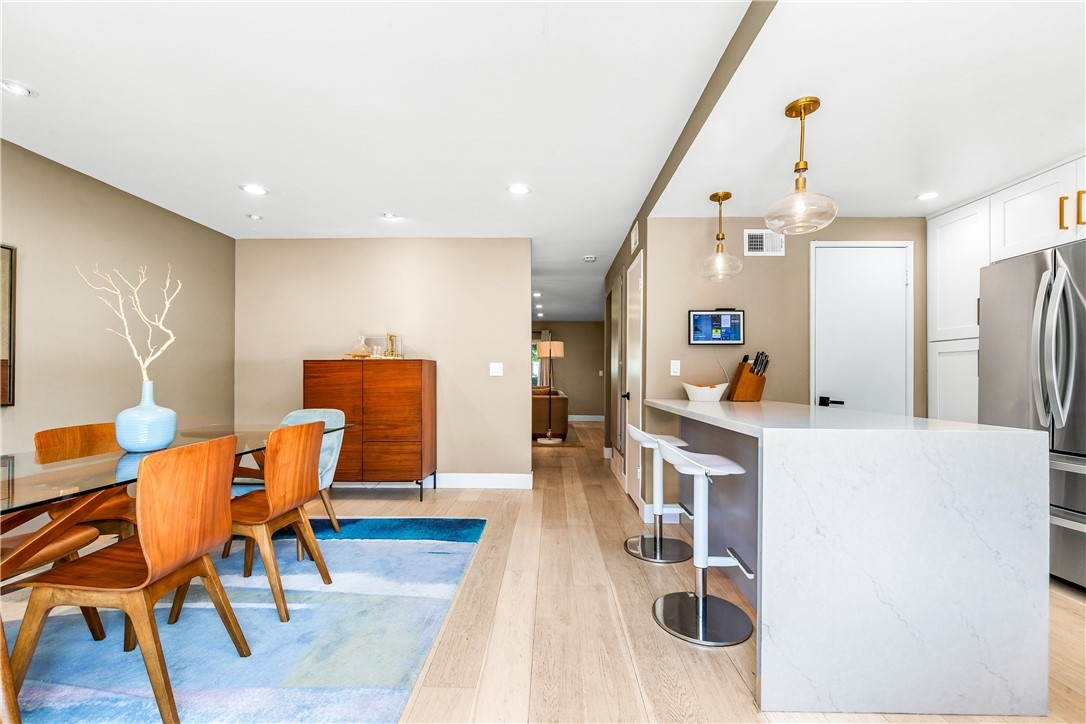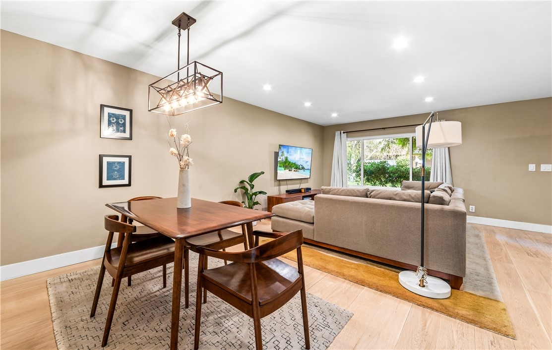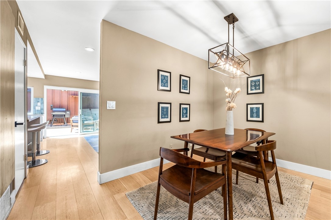 Welcome to this beautifully updated 3-bedroom, 3-bathroom townhome in the sought-after Gardens community. Step inside and be greeted by the spacious living and dining area, adorned with gleaming real wood floors, elegant recessed lighting, and a tastefully updated powder room. The kitchen has been remodeled with stunning quartz countertops, new stainless steel appliances,a wine fridge, a stylish sink, and sleek cabinetry. Adjacent to the kitchen, there's a versatile space currently used for casual dining, but it can easily transform into a cozy den or playroom—whatever your heart desires! This space opens directly to a private patio, perfect for hosting delightful barbecues or simply unwinding in serene relaxation. Venture upstairs to discover an inviting primary bedroom retreat, complete with an exquisitely remodeled en-suite bathroom featuring a luxurious soaking tub and a spacious walk-in shower with dual shower heads. Two additional well-appointed bedrooms and another beautifully renovated full bathroom complete the upper level. The home boasts new windows and recessed lighting throughout, providing a bright and airy ambiance, while ample storage ensures everything has its place. The detached two-car garage, complete with laundry facilities, is conveniently accessible from the patio. Enjoy resort-style living with the enchanting park-like grounds, a sparkling swimming pool, and well-maintained tennis courts. The prime location offers easy access to highly-rated schools, shopping, dining, and recreational activities. Plus, you'll appreciate the convenient freeway access and proximity to the waterfront. It's also a fantastic area for your furry friends, with a quick walk to the dog park. Embrace the lifestyle you've always dreamed of in this exceptional townhome!