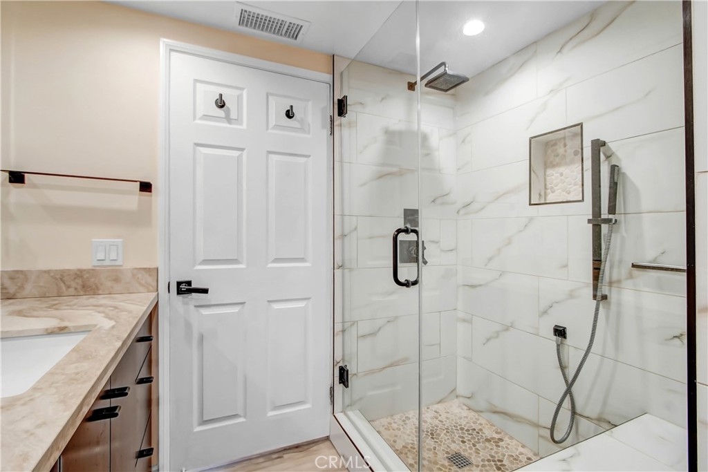 Welcome home to this stunning townhome in the highly sought-after Vista Del Oro neighborhood of San Pedro, offering breathtaking views of the Vincent Thomas Bridge and the bustling port! The upper level greets you with a spacious living room complete with a cozy fireplace, seamlessly connecting to the dining area and a beautifully remodeled kitchen. The kitchen is a chef’s dream, featuring modern appliances, including a stainless-steel refrigerator, double oven, dishwasher, and cooktop. Striking granite countertops, wood cabinetry, ample cupboard space, and an expansive breakfast bar enhance both its aesthetics and functionality. This level also includes a bedroom, a bathroom with a shower, a convenient laundry area, and sliding glass doors that lead to a large private balcony, perfect for enjoying the stunning bridge and port views. Downstairs, you’ll find an additional bedroom with a full bathroom, and the primary suite, which boasts its own remodeled ensuite bathroom, generous closet space, and a private patio adorned with beautiful palm trees and bistro lighting. Additional features include hardwood and vinyl flooring, an attached two-car garage, and three mini-split units for customized heating and air conditioning. Conveniently located near downtown San Pedro, you'll enjoy easy access to a variety of restaurants, shopping, and vibrant nightlife. Nearby attractions include Crafted at the Port of Los Angeles, Brouwerij West Brewery, the new Port Town Brewery, and the iconic Korean Bell at Angels Gate Park. Invest in San Pedro now before the exciting new waterfront West Harbor project is complete! 2331 S Cabrillo Avenue is more than just a home; it’s a lifestyle.