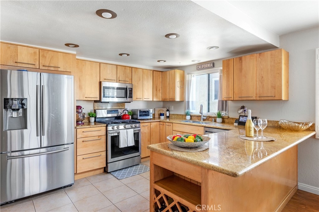 Spacious & airy END UNIT in small, 18-unit complex. Open-concept floor plan with 3 bedrooms--all on ONE LEVEL. Set high on the hill with ocean breezes & views to the left & right of your private balcony/patio. Nearly 1400 square feet, this unit is one of 3 largest in the complex, located in the quiet back corner, away from the street. There are NO STAIRS from parking (street or garage) into the unit or within the unit. Large kitchen has granite counter tops w/lots of counter space & storage galore, pantry w/rollout shelves plus a built-in wine rack. Freeform living space w/dining area w/ceiling fan & living room with built-in storage. Patio has ocean peek & great fireworks views. Three good-sized bedrooms w/ceiling fans & white wood shutters. Remodeled full bath in hall has tub/shower combination. Grand owner suite has large closet, private en-suite bath w/spacious vanity, separate water closet + large step in shower. Newer windows throughout, plus glass sliders. 2 side-by-side parking spaces in security garage. Laundry is steps away – shared by only 6 first-floor units, w/secure storage for each owner’s supplies – so great that it’s not making noise/taking space in your unit. Ideal location, central to all the conveniences that make life great. Surrounded by amazing restaurants, both large & small. Enjoy the quaint charm of San Pedro or venture out to nearby Long Beach, Torrance, Rancho Palos Verdes & the South Bay. Easy access to 110 & 710 Fwys. World-class beaches, coastal hiking trails & tide pools, Wildlife Nature Preserve + beautiful ocean bluffs are yours to enjoy! There’s so much to do…but you may never want to leave your private oasis!