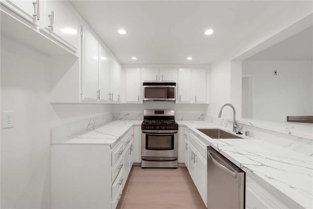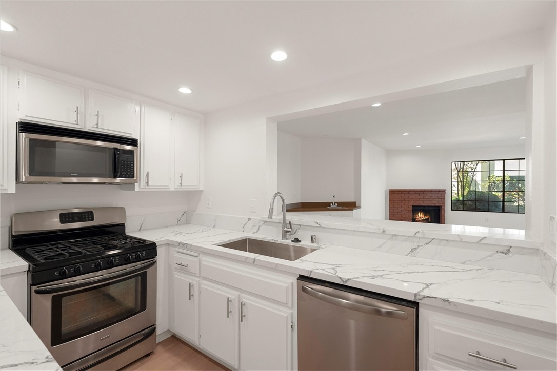 This tastefully updated 2-bedroom, 2-bath condo offers a perfect blend of modern comfort, smart design, and unbeatable location. Spanning 1,174 square feet, this home features a desirable dual-suite layout—each bedroom with its own private bathroom—separated by an open-concept living, dining, and kitchen area for maximum privacy and flexibility. Step inside to find brand-new wood laminate flooring, modern recessed lighting, and a cozy fireplace that anchors the living space. The renovated kitchen shines with sleek quartz countertops, a stainless steel sink, and a full suite of stainless steel appliances, perfect for both everyday cooking and entertaining. The wet bar adds a stylish touch for hosting or relaxing nights in. The spacious primary suite offers a serene retreat, complete with a tub and separate standing shower, and a new vanity for a fresh, spa-like feel. Sliding doors lead to a private patio, ideal for morning coffee or a breath of fresh air. Convenient underground garage parking for two vehicles is included, and the secure building offers peace of mind. Located in a vibrant neighborhood, this condo places you within walking distance of Starbucks, local dining hotspots, a gym, Albertsons, and two beautiful parks. You’re just minutes from Eastview Park, Peck Park’s hiking trails, Palos Verdes coastal paths, Terranea Resort, and the beaches of Torrance and Redondo. Enjoy the best of coastal living with urban convenience, plus easy freeway access for commuting. Whether you’re seeking a stylish starter home, a smart downsize, or a fantastic investment, this move-in-ready condo delivers comfort, lifestyle, and location in one perfect package.