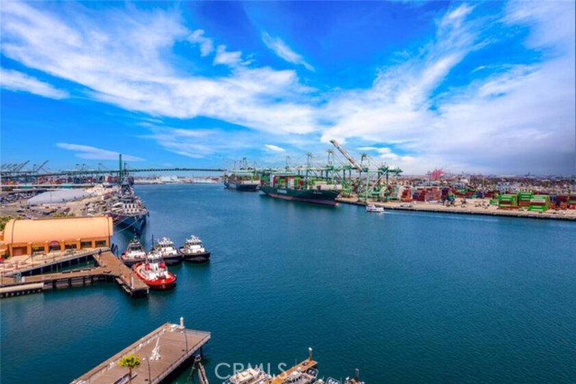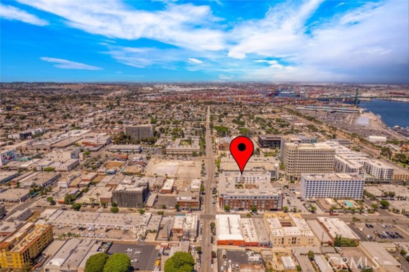 Located in Downtown Arts District of San Pedro, The Centre Street Lofts are a newer Urban Lifestyle Building that feature an immaculate 2nd floor unit that presents ground level to the communal courtyard. This property offers a spacious yet flexible floor plan currently utilized as a 1-bedroom with ensuite bathroom and large custom walk-in closet, and the potential second bedroom area is used as an open-space home office with guest bathroom which can easily be converted and customized into a 2-bedroom with a permanent or temporary wall. This condo boasts high ceilings which add to the open concept, loft-style feel where you can enjoy central air and heat. The chef's kitchen has granite countertops, ample storage, a peninsula with barstool seating, and stainless steel appliances. The refrigerator, built-in stove, dishwasher, and microwave, as well as an in-unit stackable washing machine and dryer are included in the sale. Secured indoor parking includes 2 side by side parking spaces on the same floor for the owner, and the building has ample visitor parking in its underground garage. Step outside of your sliding glass doors onto to first level of the courtyard where you can soak in some sun, entertain your guests, or relax on the 3rd floor common area patio equipped with BBQ and newer patio furniture.